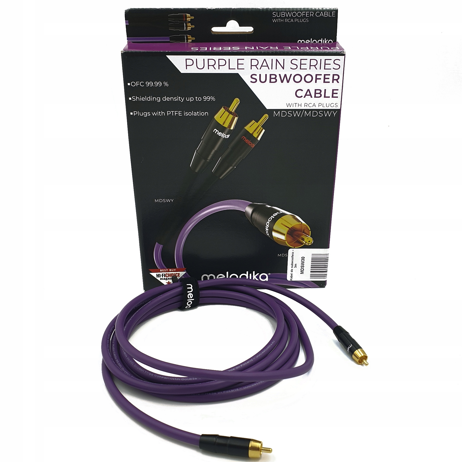 Melodika – це висококласний польський продукт, адресований усім шанувальникам гарного дизайну та чудового звуку. Про якість компанії свідчать її контракти на прокладку кабелів військової техніки, нафтових платформ або гібридних машин. Серія кабелів Melodika Purple Rain забезпечує цей рівень продуктивності в руках шанувальників чистого, красивого звуку. Усі кабелі виготовлені з матеріалів найвищої якості, на польських виробничих підприємствах під наглядом спеціалістів та аудіолюбителів.