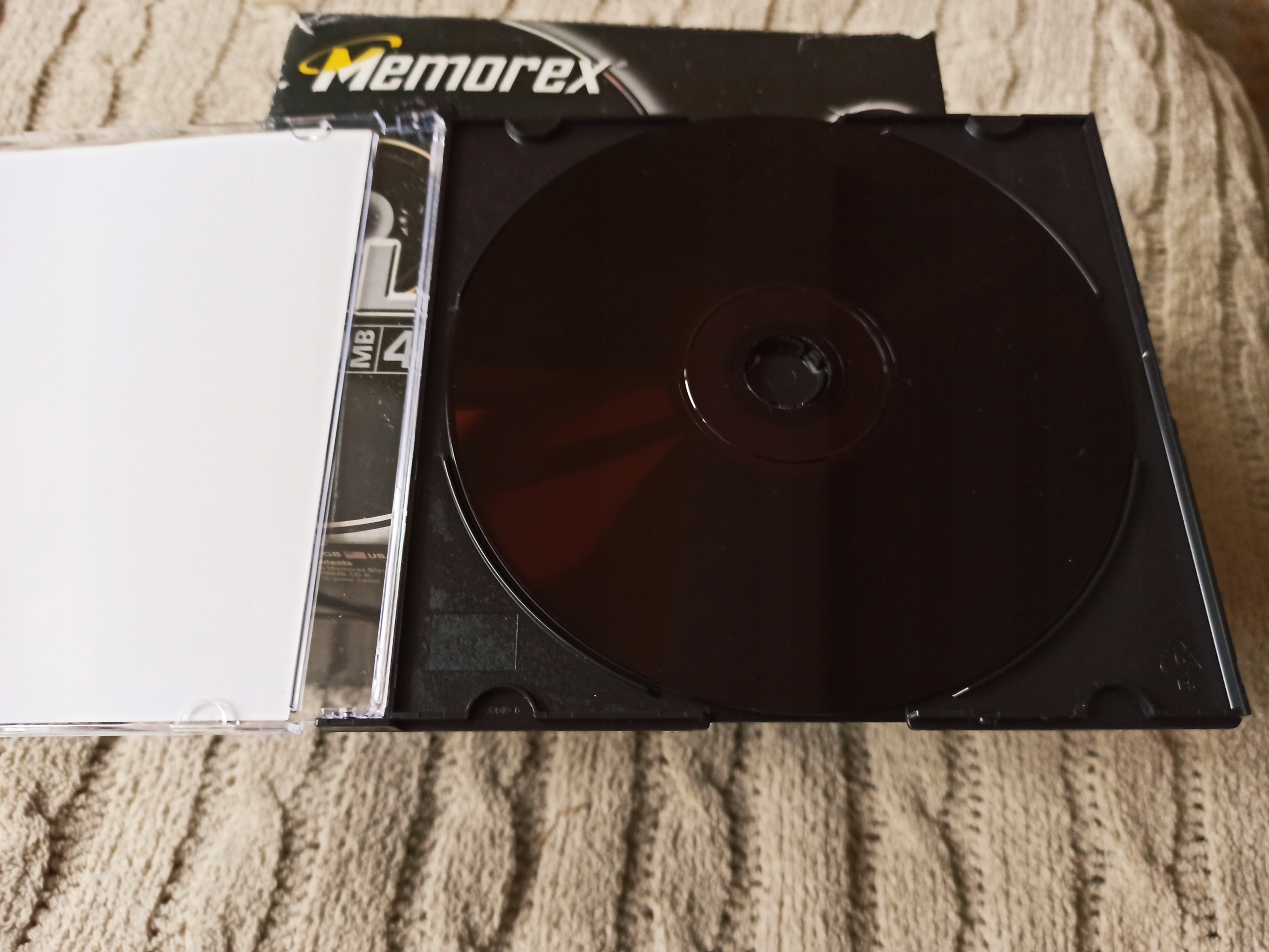 Memorex CD-R 700MB Black Vinyl Printable 1pc. Версія для струменевого друку - діапазон друку 22-68 мм, код MID\ATIP: 97m15s10/17f. Диск виготовлено за технологією Black Dye, тобто спеціального чорного захисного шару, який забезпечує максимальний захист збережених на ньому даних, фотографій, музики тощо від ультрафіолетових променів і шкідливого впливу сонячних променів і високих температур. Виробник вказує термін служби даних протягом 100 років за умови правильного запису, використання та зберігання.