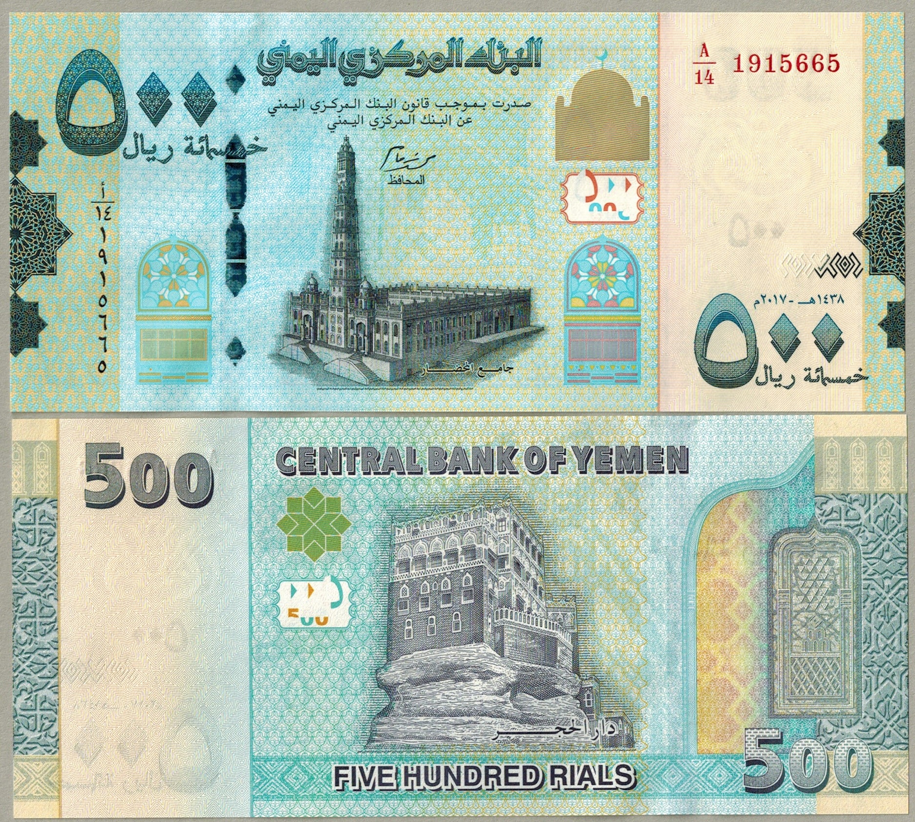 Ємен 500 ріалів 2017 P-39b UNC