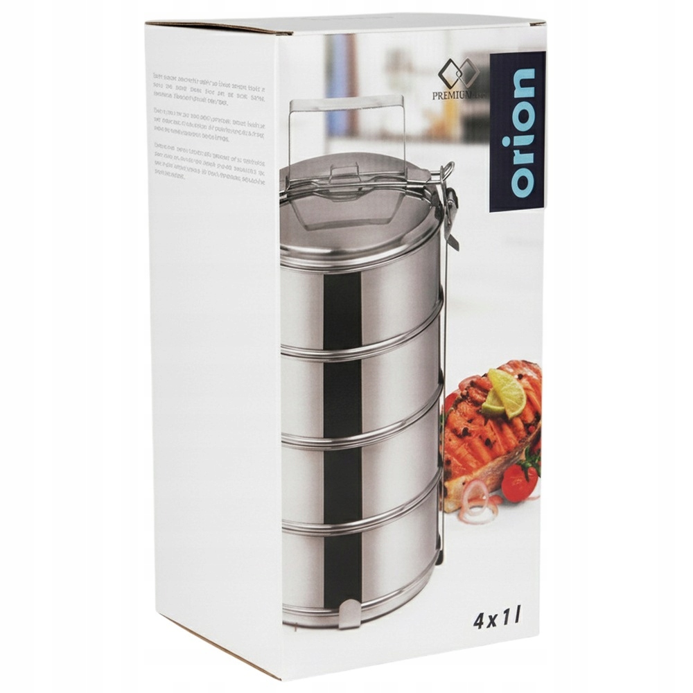 Обідня їдальня для транспортування їжі. Виготовлений з безпечних для здоров'я та харчових продуктів матеріалів. Він має чотири контейнери, які дозволять вам правильно транспортувати їжу. Контейнери з'єднуються за допомогою затискача, тому їх зручно складати. Ідеально підходить для походів, кемпінгу, гірських експедицій та інших подорожей. Влітку ми можемо використовувати його для зберігання та перенесення морозива, напр. під час садових вечірок. Оригінальна продукція чеського бренду Orion. Виготовлена ​​за європейськими стандартами.
