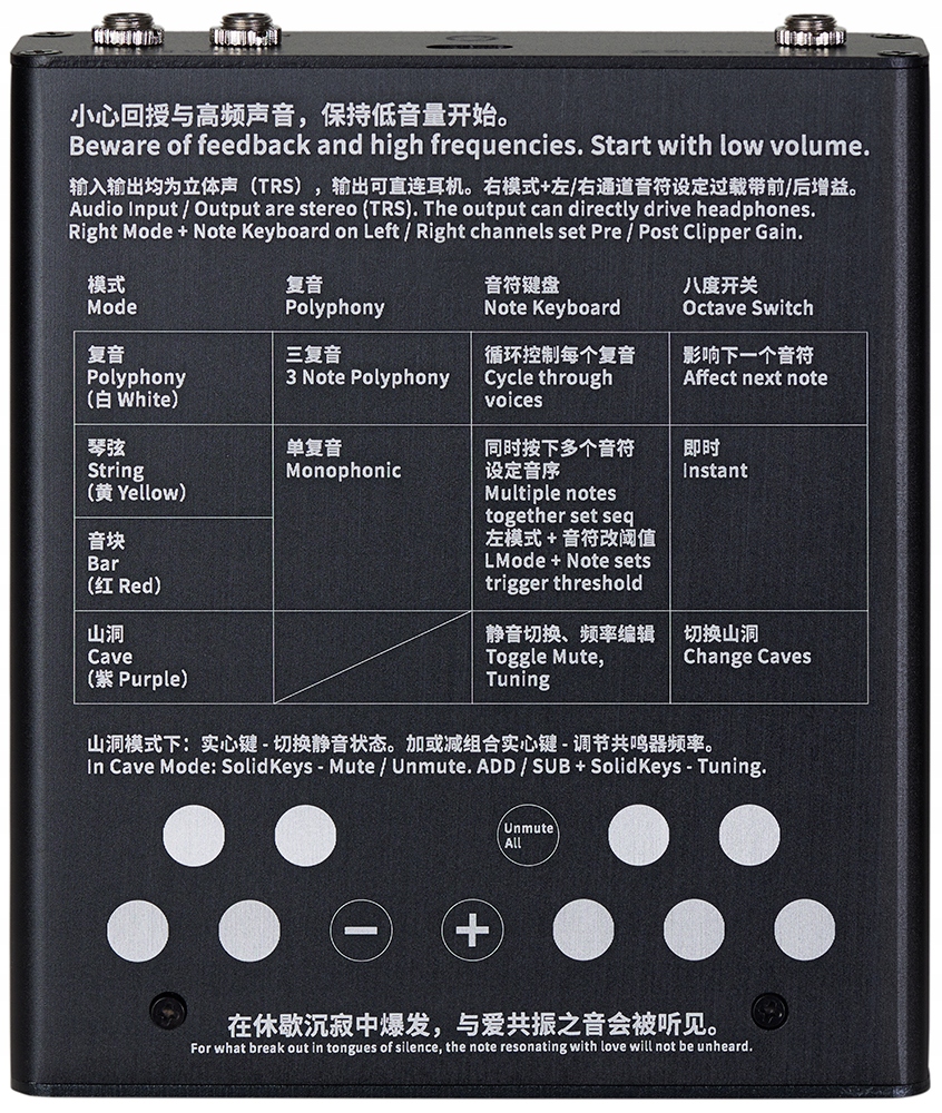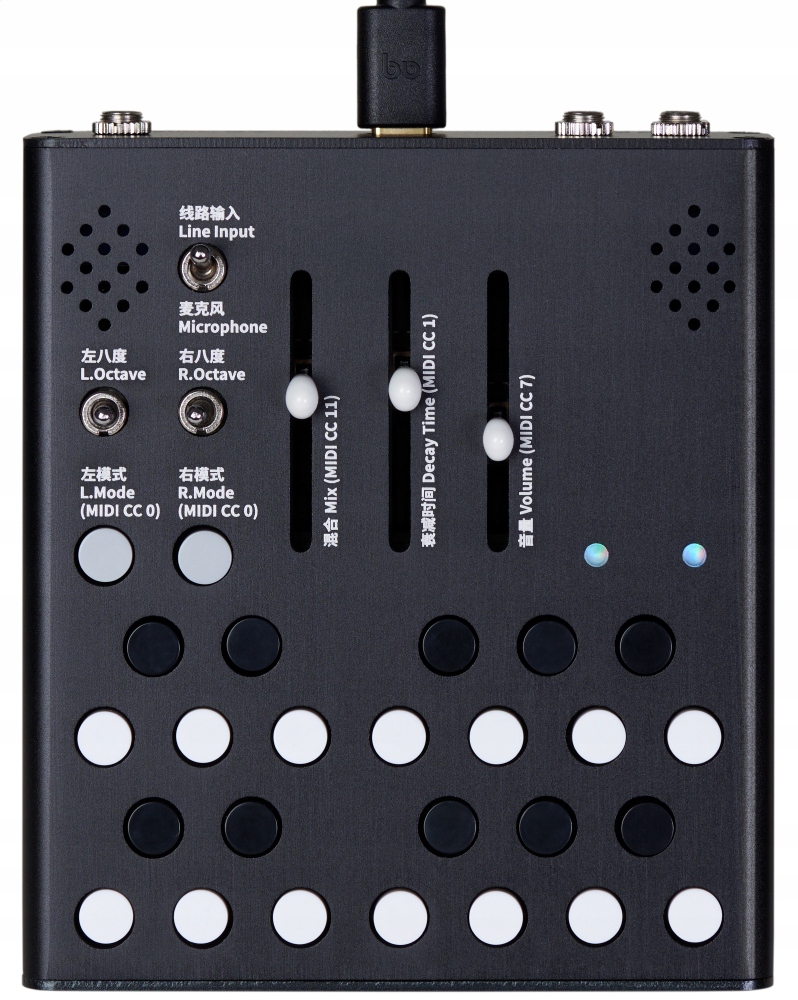 Два вбудовані мікрофони дозволяють вам взаємодіяти та збагачувати свій вокал, а також звукове середовище навколо вас. Версія 2 тепер також пропонує підключення MIDI, корпус і кращий інтерфейс користувача з фейдерами замість ручок і перемикачів на передній панелі. Блок тепер чорний. У комплект входить позолочений кабель TRS – DIN MIDI.