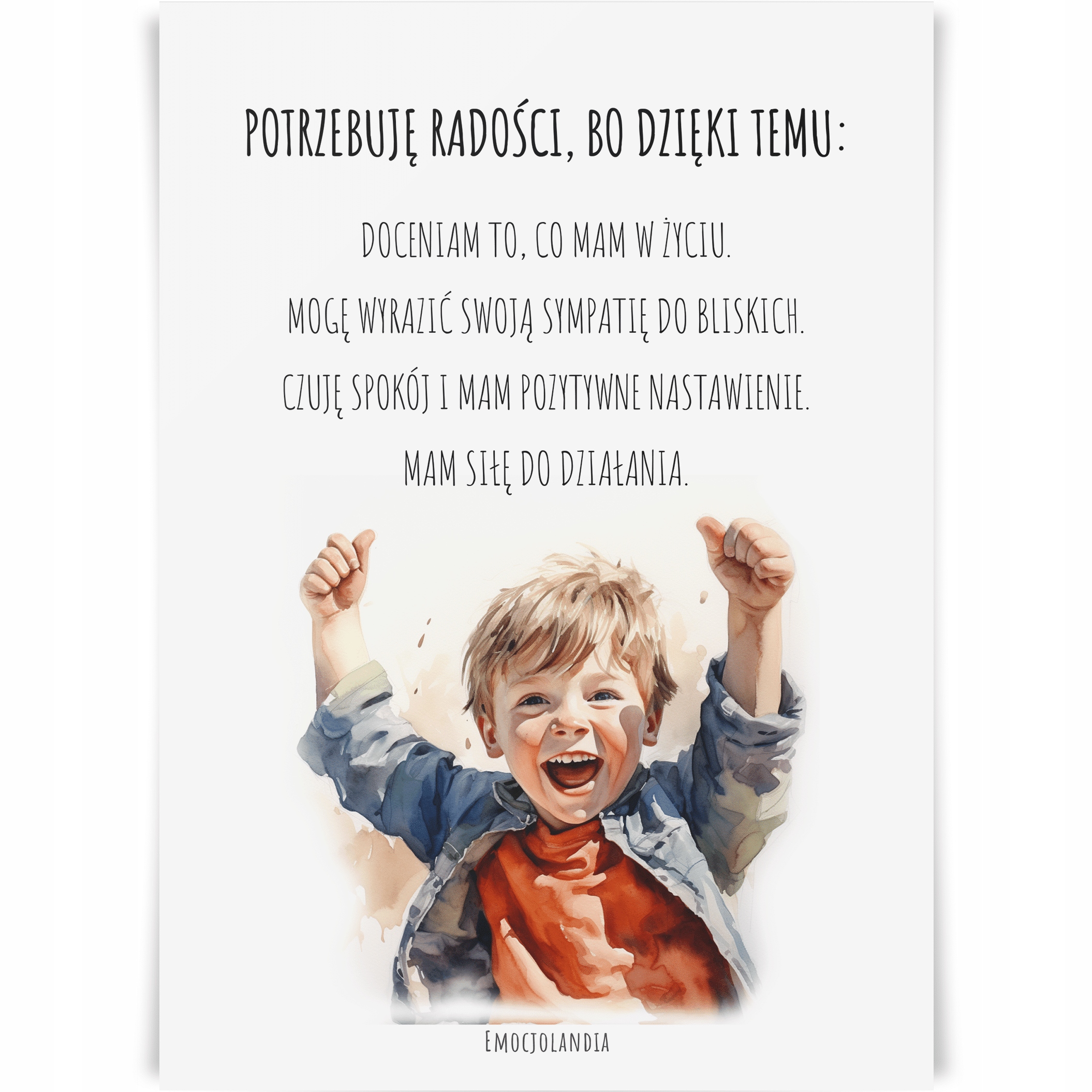 Наш набір плакатів «Мені потрібні емоції» — це надзвичайна колекція плакатів, яка несе повідомлення про те, що кожна емоція важлива та відіграє важливу роль у нашому житті. У набір входить п’ять плакатів, кожен з яких присвячений одній із «базових» емоцій: сум, гнів, сором, радість і страх. Кожен плакат додатково представляє чотири важливі функції, які ці емоції відіграють у житті дитини.