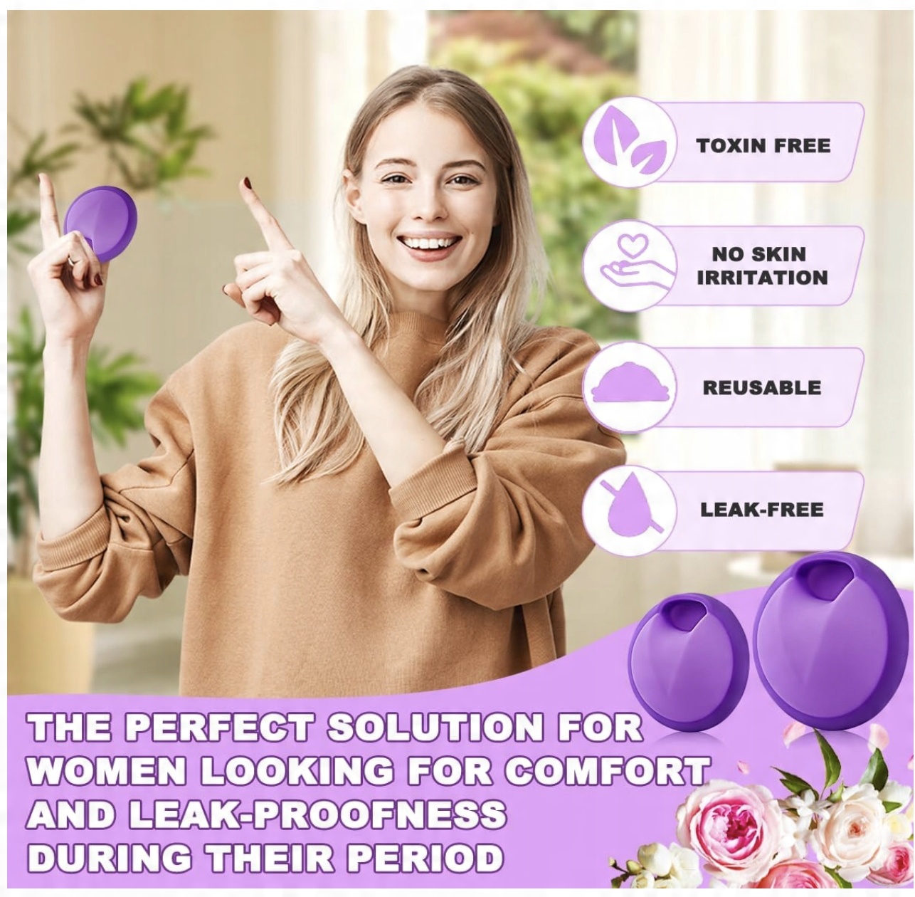 Менструальні чаші М'який силіконовий менструальний диск, менструальний диск, набір із 2 менструальних чаш із 100% медичного силікону - багаторазовий та екологічно чистий - можна носити до 12 годин