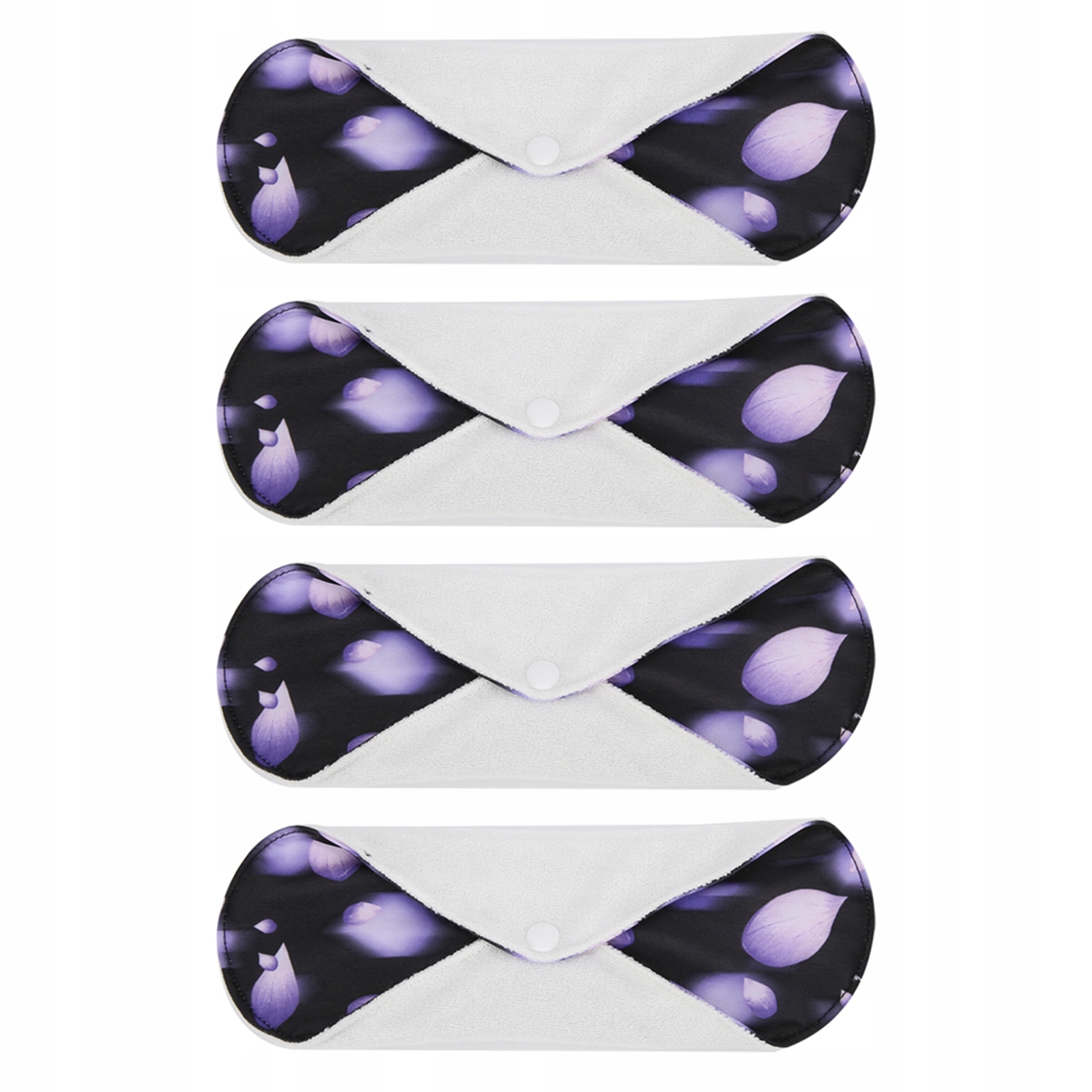 1. Зовнішній шар з друком та шарами бамбукового вугілля, що контактує з шкірою, встановлений і зручний для носіння. Внутрішній шар бамбукових вуглецевих прокладок м'який, а більш темні кольори запобігають плямам і не лише поглинають рідини, але й усунуть неприємні запахи. Середній шар мікрофібри робить багаторазові менструальні санітарні серветки надзвичайно вбираючими, придатні для повторного використання і можуть бути промивані, що робить їх більш екологічними. Дві засувки, завдяки яких вони безпечніші та сильніші. Ви можете замінити кілька прокладок кожні 2-6 годин або, якщо це необхідно. Близько 18 х 25 см / 7,1 х 9,8 дюйма, включаючи 4 частини менструальних санітарних серветок у упаковці, які задовольнять ваші потреби.