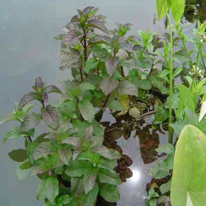 Акватична монетна м’ята Mentha Aquatica. Прекрасно ароматно з вапняною, лимонною та апельсиновою водою. Він має рожеві фіолетові суцвіття, характерні для видів м'яти. Немає нічого прекраснішого, ніж незвичайний, гарний запах, що пливе над тонною. Mentha Aquatica має типові зубчасті та волохаті зелені кольори. Йому подобаються сонячні або темні положення, топусткує добре затінюється більшими рослинами. Вважає перевагу мокрим і частково зануреним у воду. Приймає занурення до приблизно 15 див. Рослина є стійкою до морозів і витримує температуру до -20'c. Як і більшість рослин нашого клімату, він скидає листя взимку і зиму у вигляді кореневища, які можна розділити і лопнути навесні. Його аромат відлякує комарі