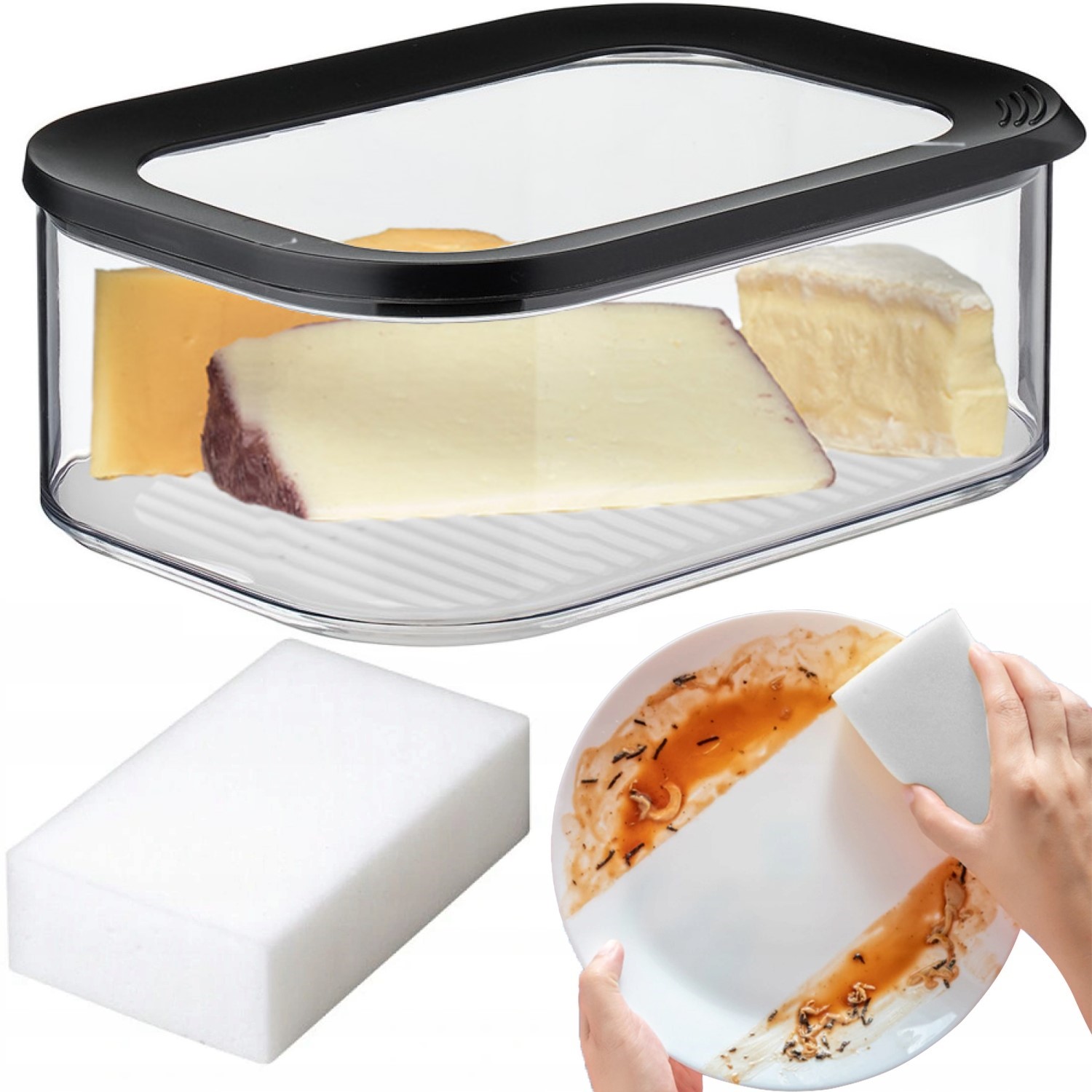 - Прозора кришка дозволяє контролювати вміст без необхідності відкрийте його контейнер.