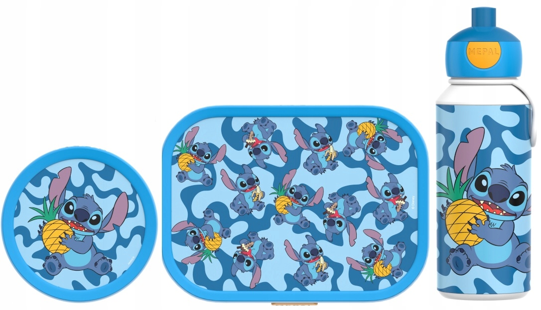 Практичний, барвистий і безпечний ланч-бокс Mepal, коробка для фруктів і пляшка води з мотивом із фільму «Стіч»