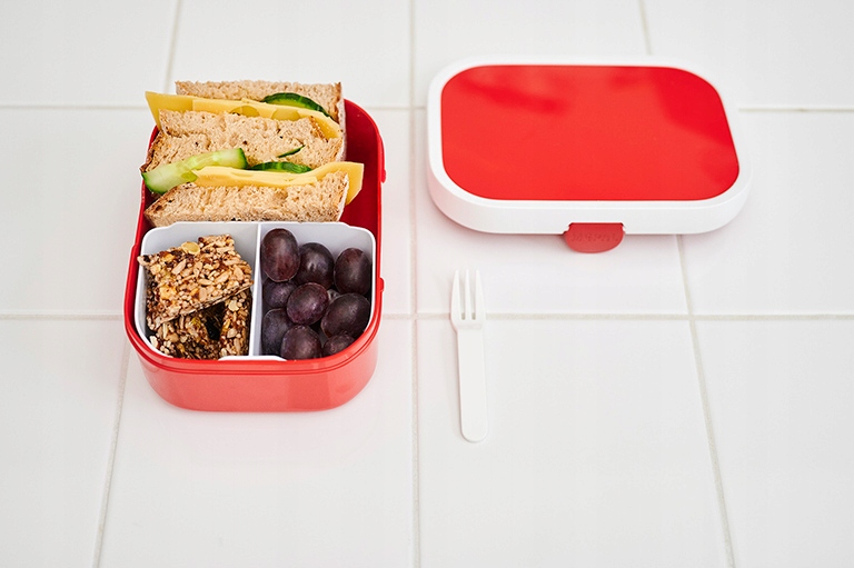 Контейнер має додаткову вставку для овочів або фруктів, після її зняття вміщує до 4 бутербродів. Його легко підтримувати в чистоті - його можна мити в посудомийній машині, в комплекті також невелика виделка.