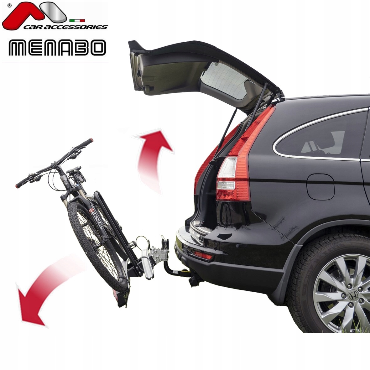 Універсальний Merak Tilting (Type K) велосипедний багажник від Menabo для транспортування трьох велосипеди, що кріпляться до кулі фаркопа.