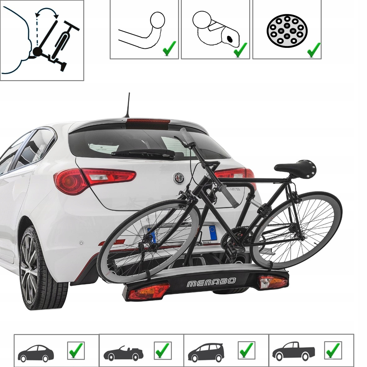 Універсальний - може бути встановлений на будь-якому автомобілі, обладнаному фаркопом, і конструкцією багажника. дозволяє перевозити навіть дуже великі велосипеди з міжколісною відстанню до 1260 мм.
