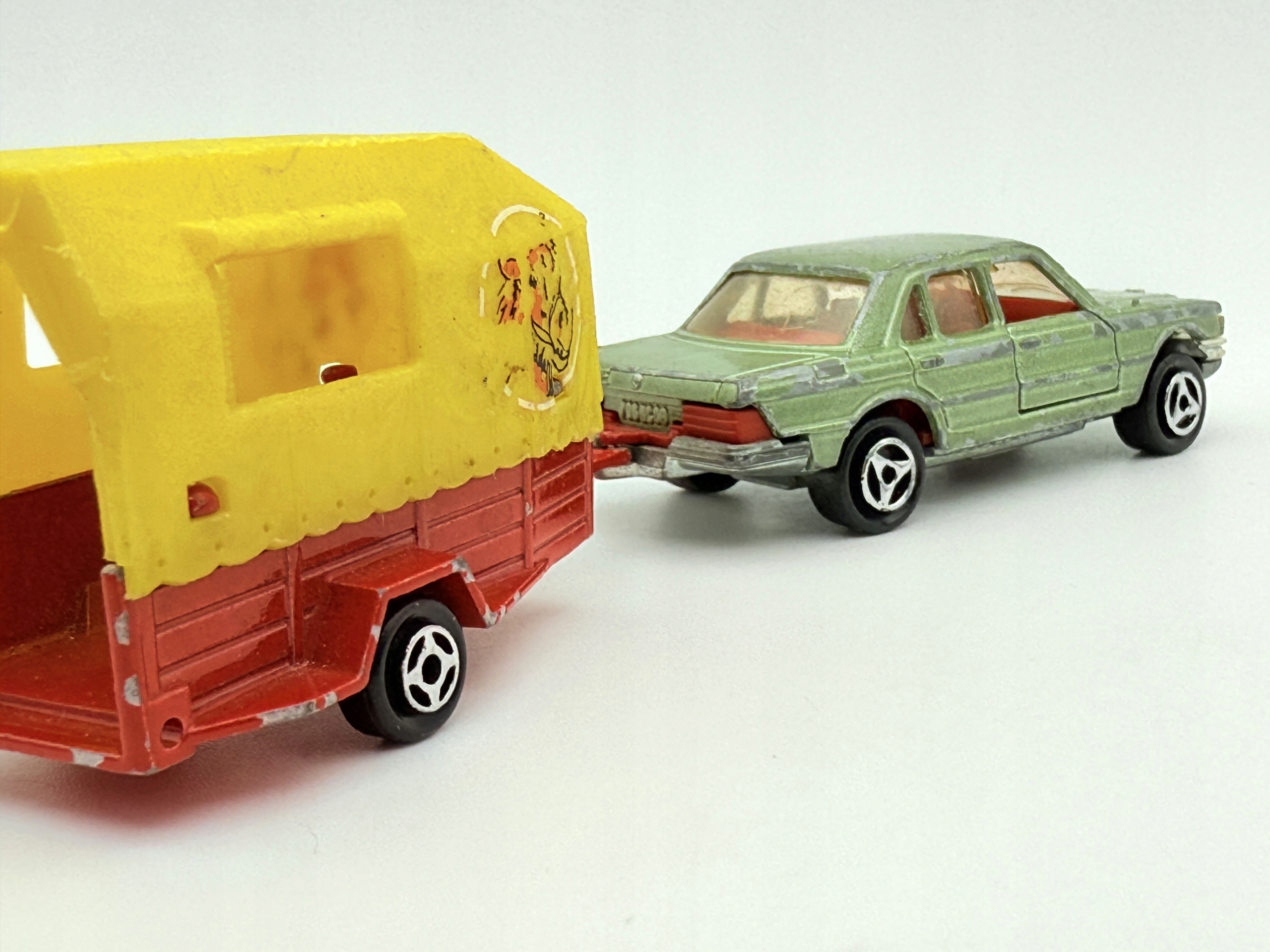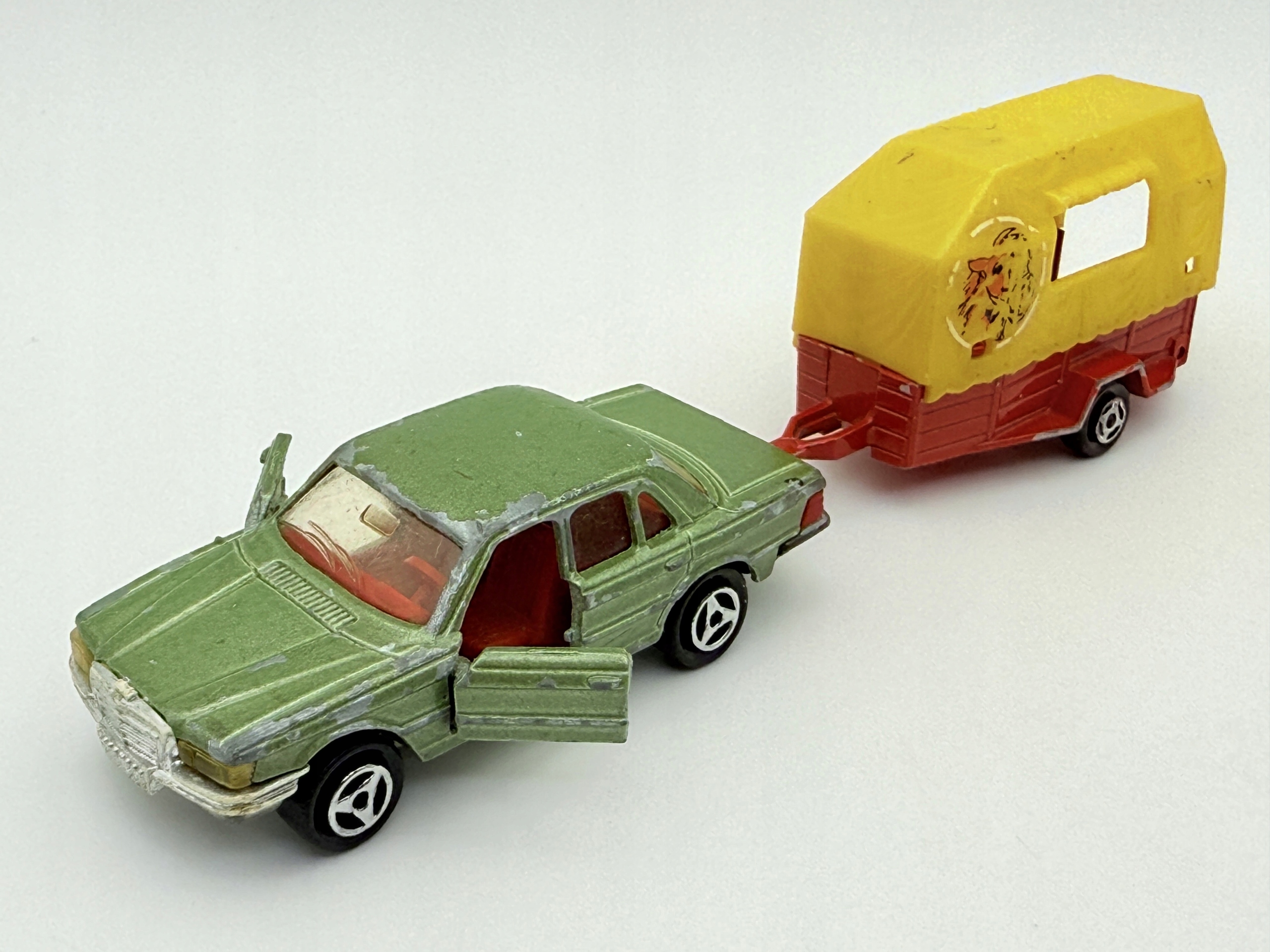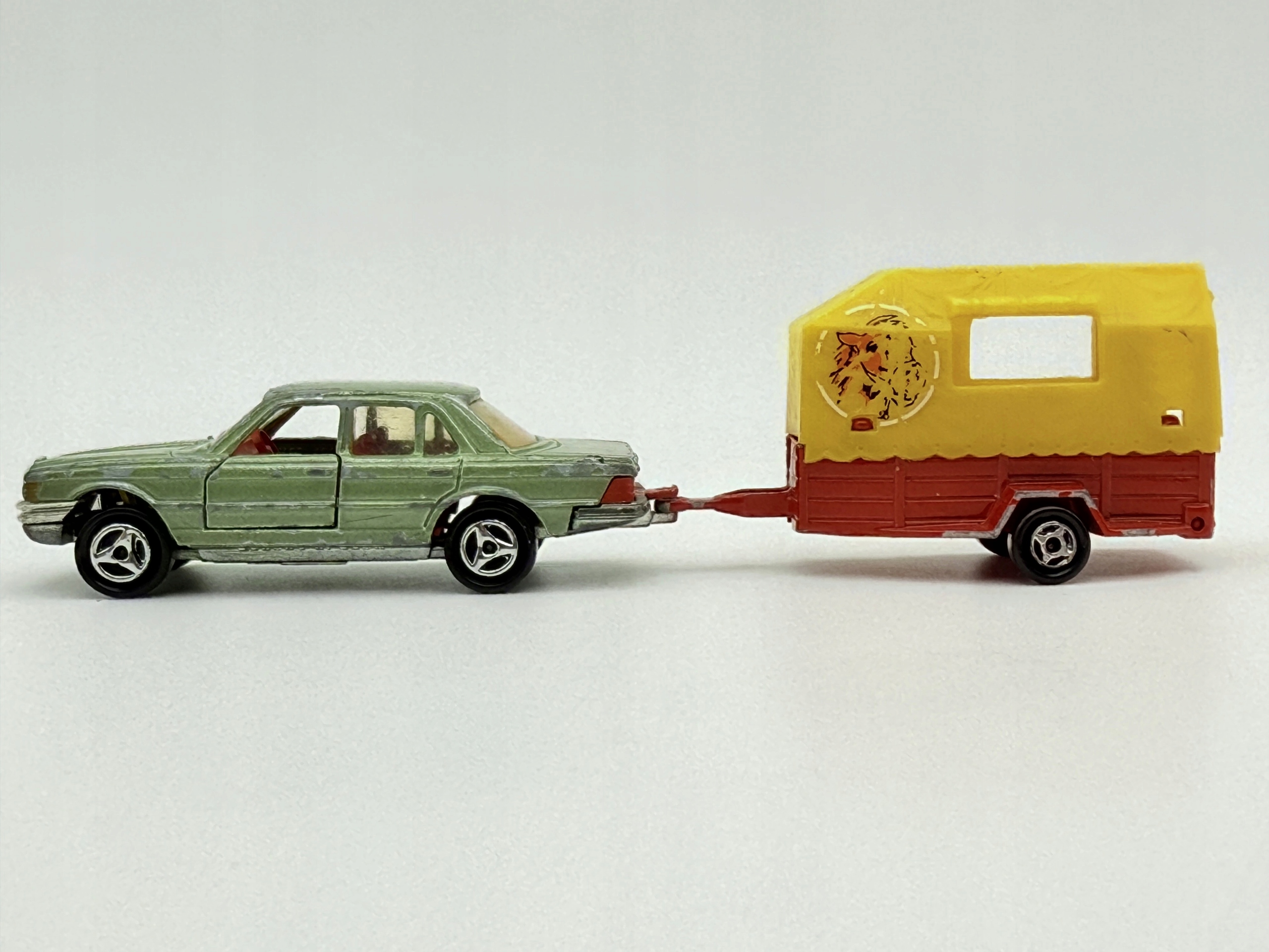 Mercedes 450 SE + причіп, Majorette, виготовлена у Франції, використовувалася оновленою