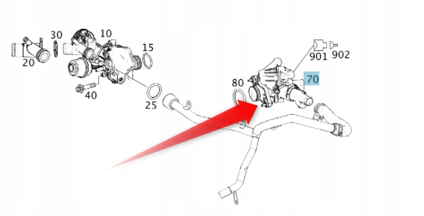 Новий оригінальний термостат для автомобілів Mercedes-Benz: A клас W176, B клас W246, CLA C118, GLA X156 з бензиновим двигуном маркування M270. 910 і M270.920.