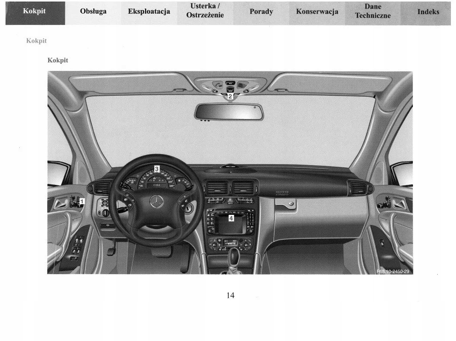 Посібник з експлуатації Mercedes містить усі версії обладнання та корисну інформацію про те, як ефективно та безпечно використовувати автомобіль, наприклад - індикатори, контрольні лампи, відкривання та закривання - освітлення та видимість, сидіння, відділення для речей, опалення, вентиляція, повітря кондиціонування - водіння, поради з експлуатації, технічне обслуговування транспортного засобу - рівень рідини, перевірка та заправка, аварійні операції, заміна коліс, запобіжників, заміна лампочок - технічні дані... та багато іншого, що дає відчуття безпеки та комфорту мандрівникам. Польське законодавство зобов’язує продавця додавати інструкцію з експлуатації автомобіля польською мовою. Посібник з експлуатації автомобіля новий і польською мовою.