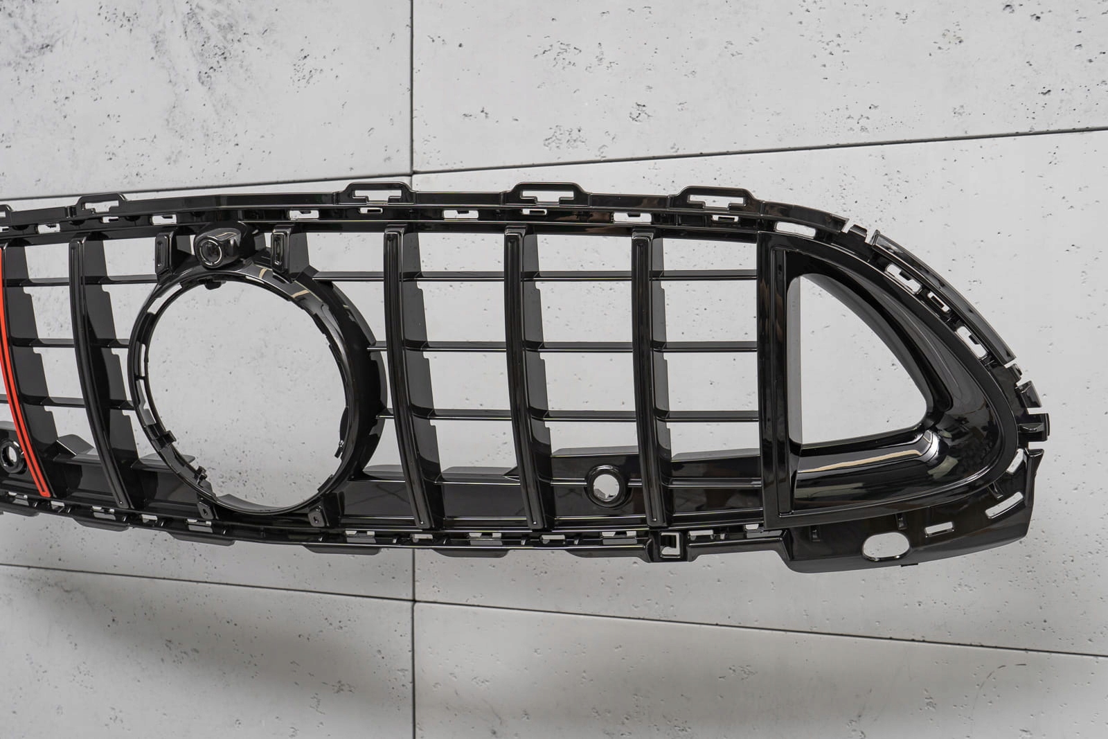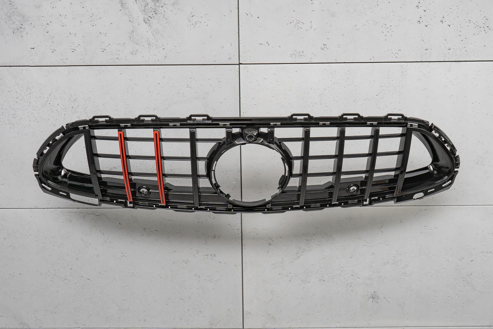 Спеціальна решітка виконана в стилі, типовому для автомобілів сегменту GT. Решітка радіатора прикрашена широкими чорними поперечинами, які неминуче нагадують про респектабельні, потужні автомобілі топ-полиці. Елемент вражає своїм спортивним стилем, ідеально поєднуючись із вражаючим дизайном Mercedes. Виріб виготовлено з високоякісного АБС пластику чорного кольору з двома червоними перекладинами. Емблема MERCEDES не входить до комплекту. Пропонована решітка не підходить до версії з візуальним пакетом AMG (AMG-Line). Решітка PANAMERICANA BRABUS STYLE є запчастиною, встановлюється замість заводської решітки. Ми рекомендуємо професійну установку.