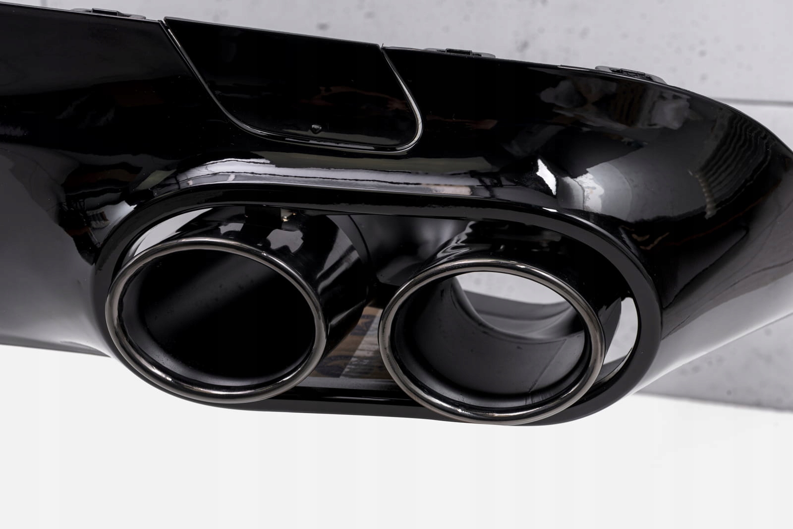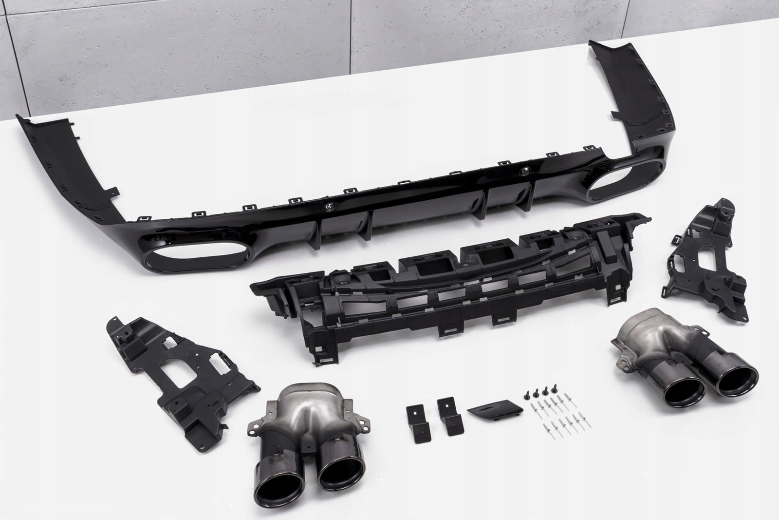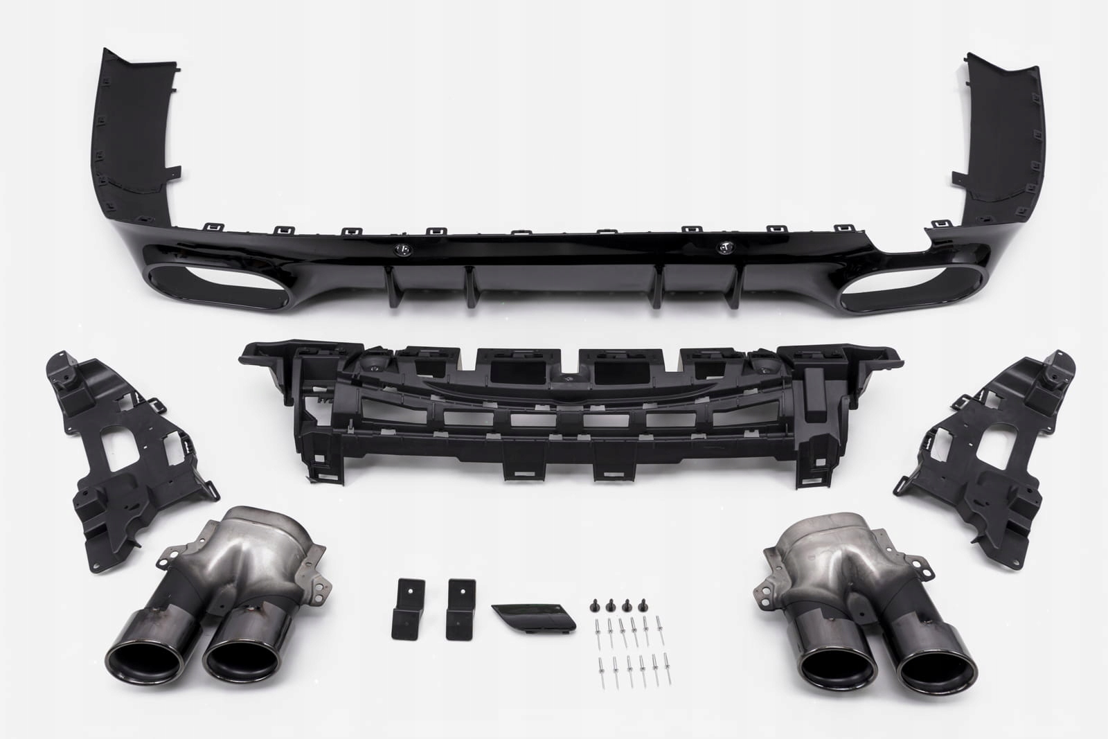 Набір для оформлення був розроблений у стилі, типовому для автомобілів лінійки AMG. Справжньою перевагою набору є спортивні вихлопні наконечники з нержавіючої сталі. Дифузор і декоративні наконечники вихлопу виготовлені з автомобільного матеріалу найвищої якості в кольорі Piano Black. Набір вражає своїм спортивним характером, а глянець чорних елементів додає елегантності - завдяки чому він ідеально поєднується з вражаючим дизайном MERCEDES CLS.