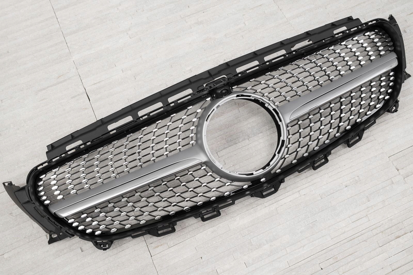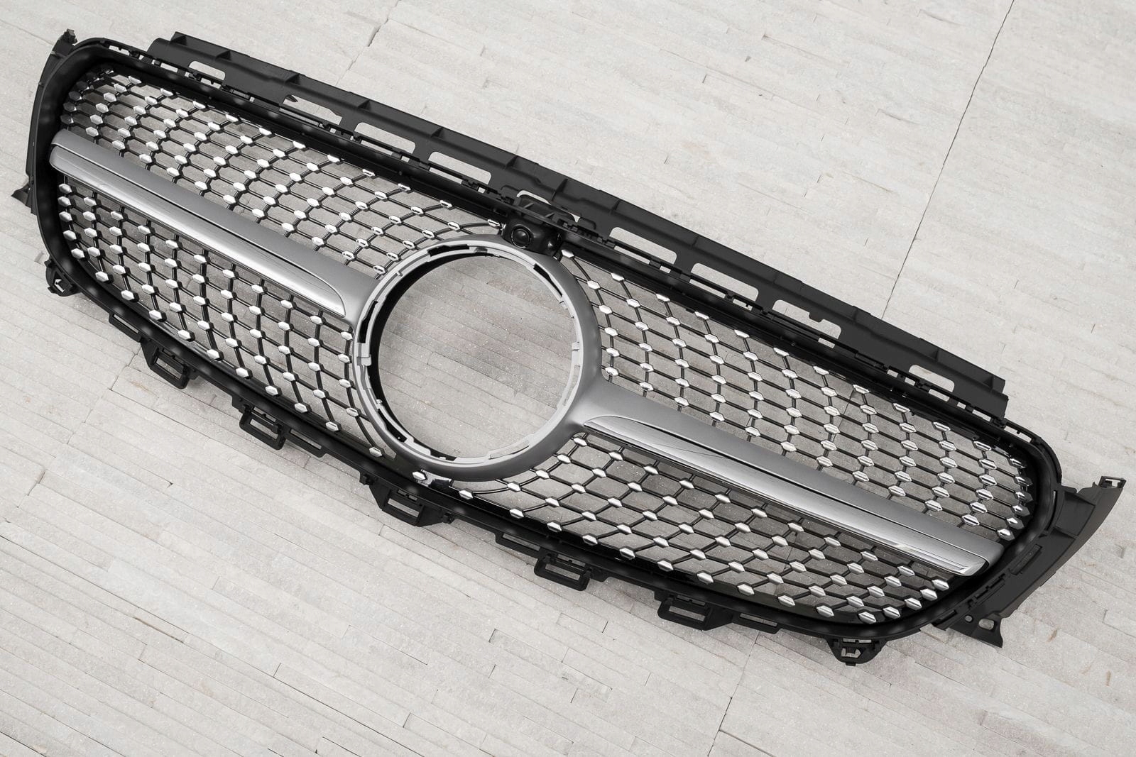 Спеціальна решітка була розроблена, щоб ідеально відповідати елегантності Mercedes. Сітка гриля прикрашена сріблястими шпильками, які радіально поширюються з обох сторін елемента, надаючи йому вражаюче оригінальний стиль, характерний для найрозкішніших моделей. Елемент заповнює простір навколо знака MERCEDES, оточуючи його елегантною рамкою. Решітка DIAMOND дозволяє створити модний, сучасний стиль вашого автомобіля, підкреслюючи стильну душу Е-КЛАСУ.