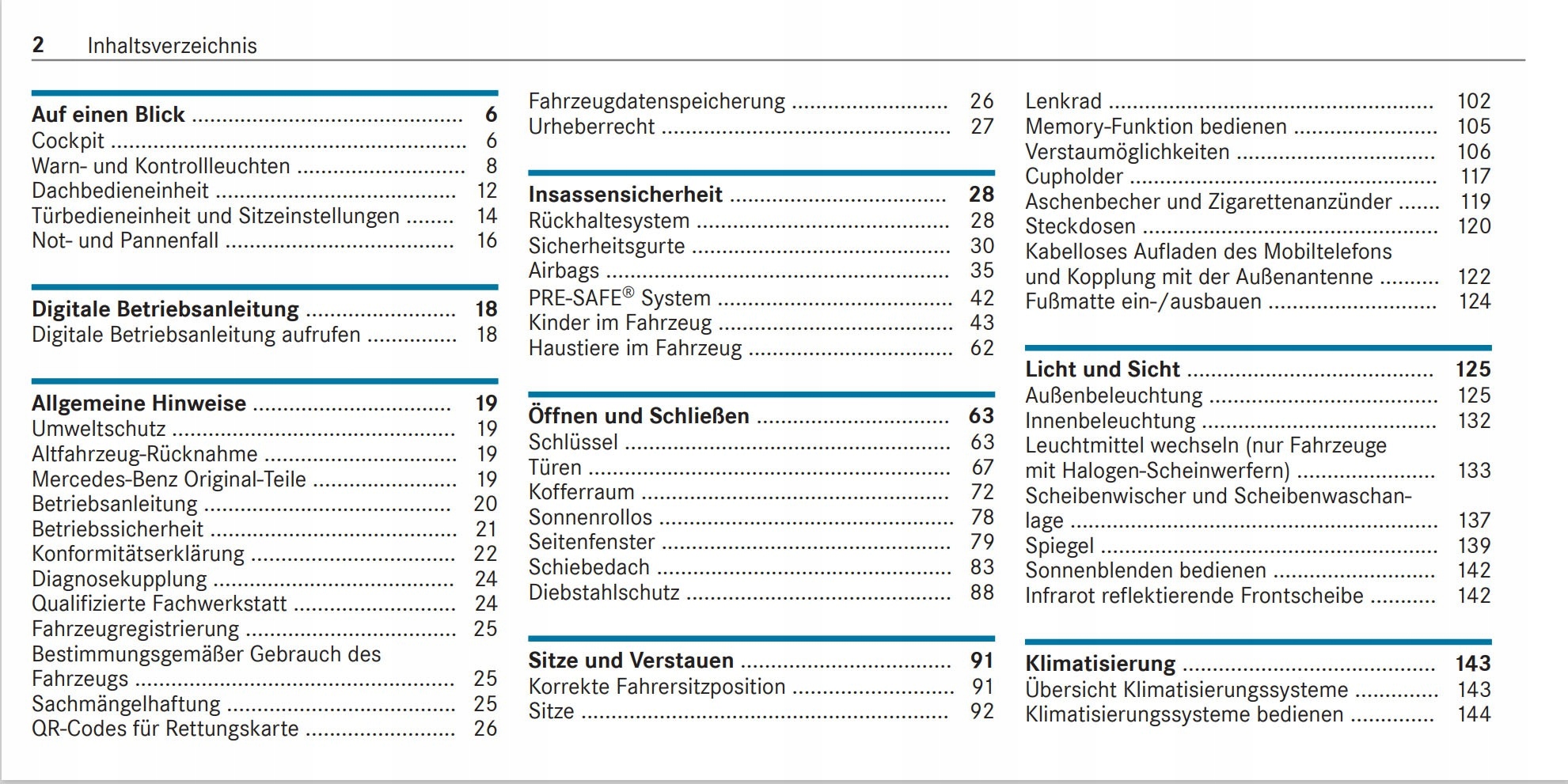 Посібник користувача Mercedes містить усі версії обладнання та корисну інформацію про ефективне та безпечне використання транспортного засобу, наприклад - Індикатори напрямку, контрольні світильники, відкриття та закриття - освітлення та видимість, місця, зберігання, опалення, вентиляція, кондиціонер - керування автомобілями, посібники користувачів, технічне обслуговування транспортних засобів, технічне обслуговування транспортних засобів - рівні рідини, перевірка та заправка, надзвичайні ситуації, операції з надзвичайних ситуацій, операції з надзвичайних ситуацій, надзвичайні ситуації, надання надзвичайних ситуацій та обігуючих мандрівки та рухомості/технічних даних ...