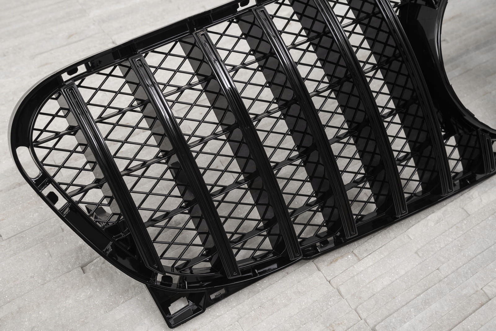 Спеціальний гриль був розроблений у стилі, характерному для автомобілів із сегмента GT. Гриль -картувальник був прикрашений широкими чорними кросбарами, які незамінно приносять до уваги повагу, сповнену сили з верхньої полиці. Елемент вражає спортивним персонажем, а блиск чорних елементів надає йому елегантності - завдяки якому він ідеально гармонізується вражаючим дизайном Mercedes.