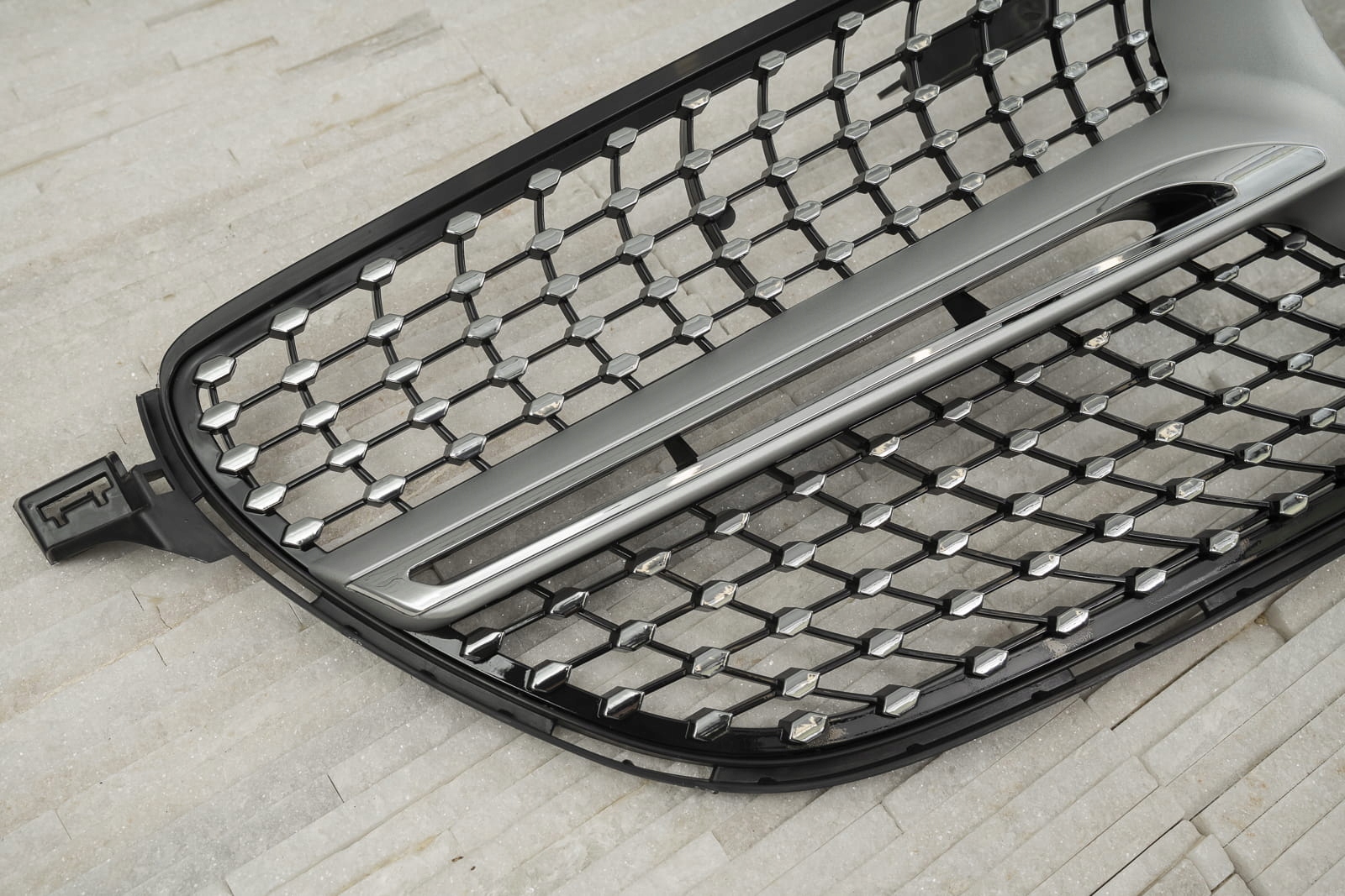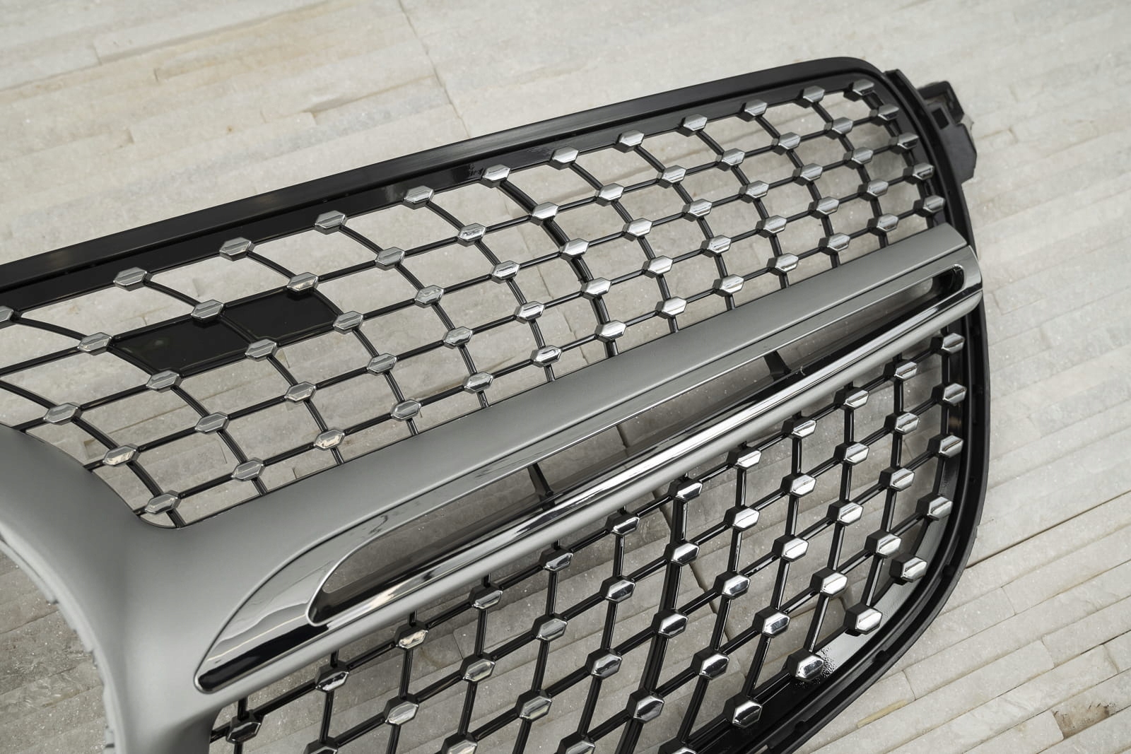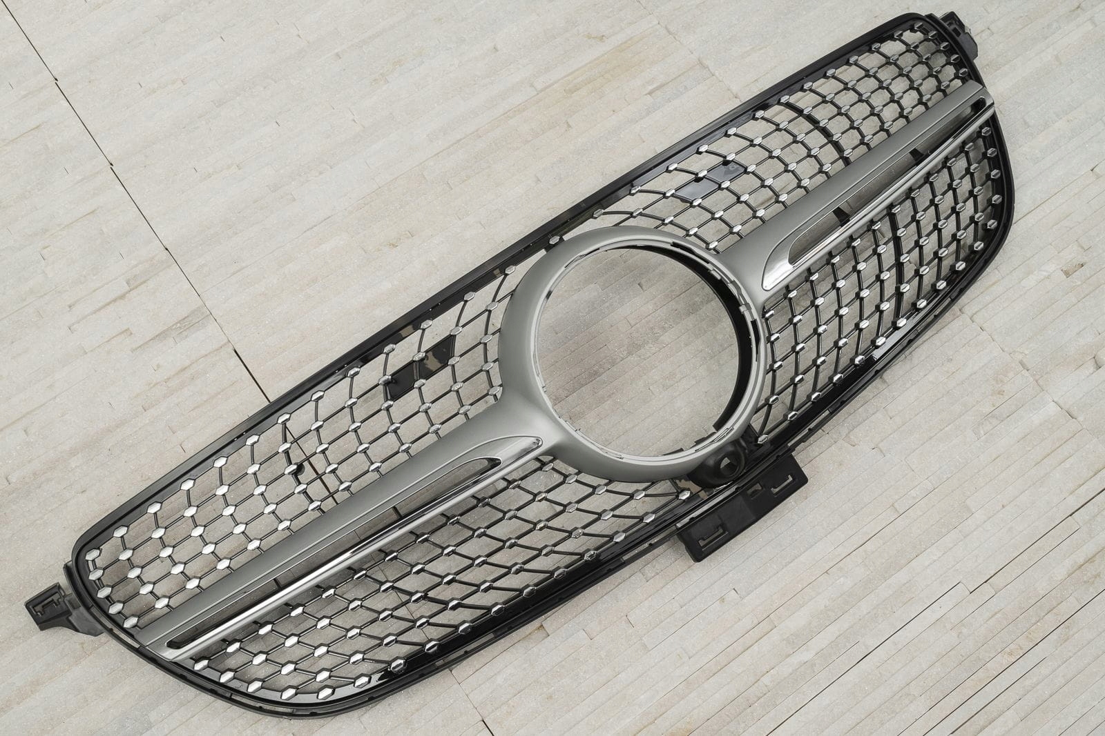 Спеціальна решітка була розроблена, щоб ідеально відповідати вишуканому дизайну моделі GLE. Сітка гриля прикрашена сріблястими шпильками, які радіально поширюються з обох сторін елемента, надаючи йому вражаюче оригінальний стиль, характерний для найрозкішніших моделей. Вони заповнюють простір навколо знака MERCEDES, оточуючи його елегантною рамкою. Решітка DIAMOND дозволяє створити модний, сучасний стиль вашого автомобіля, підкресливши візуальні переваги версії купе. Виріб виготовлено з високоякісного ABS-пластику чорного кольору з хромованими елементами. Емблема MERCEDES не входить до комплекту. Гриль DIAMOND є запчастиною, встановлюється замість заводського гриля. Ми рекомендуємо професійну установку.
