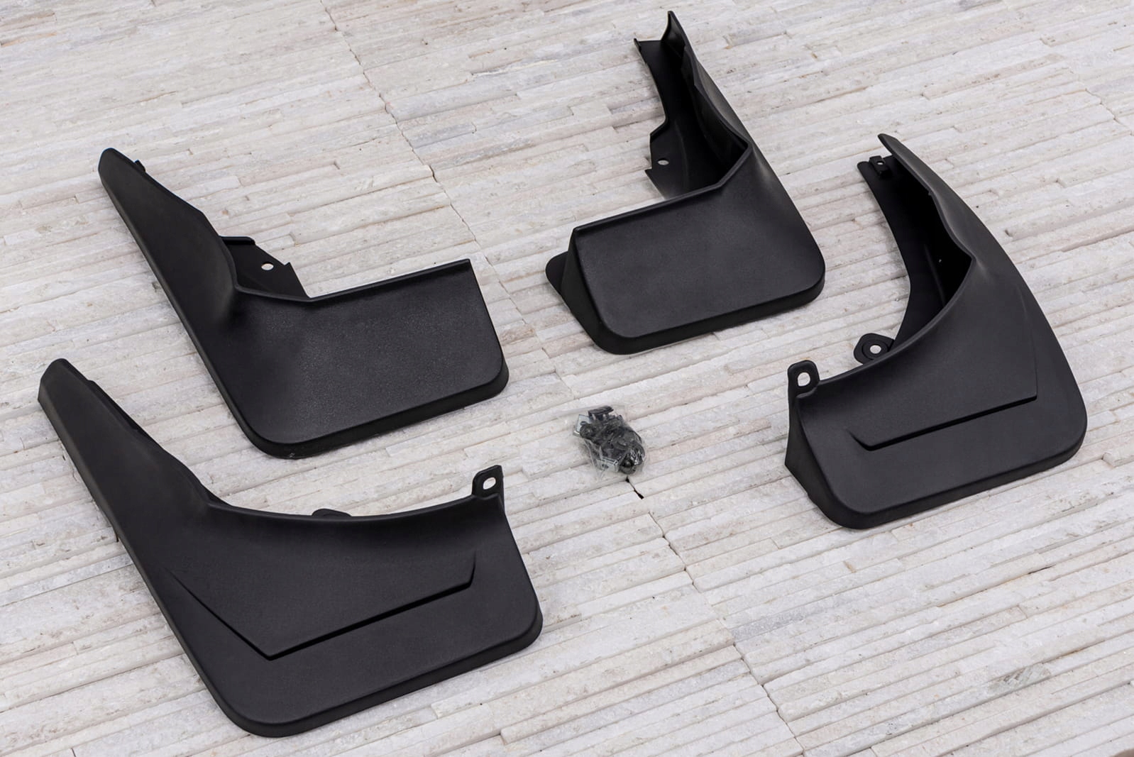 Відбілювання були розроблені для ідеального поєднання з лінією кузова автомобіля. Вони ефективно захищають сторони автомобіля від каменів з -під коліс і обмежують кількість бризок води, яка вдарила машини по спині. Вони виготовлені з високоякісного пластикового пластику, забезпечуючи адекватну гнучкість, довговічність та естетичний вигляд продукту.