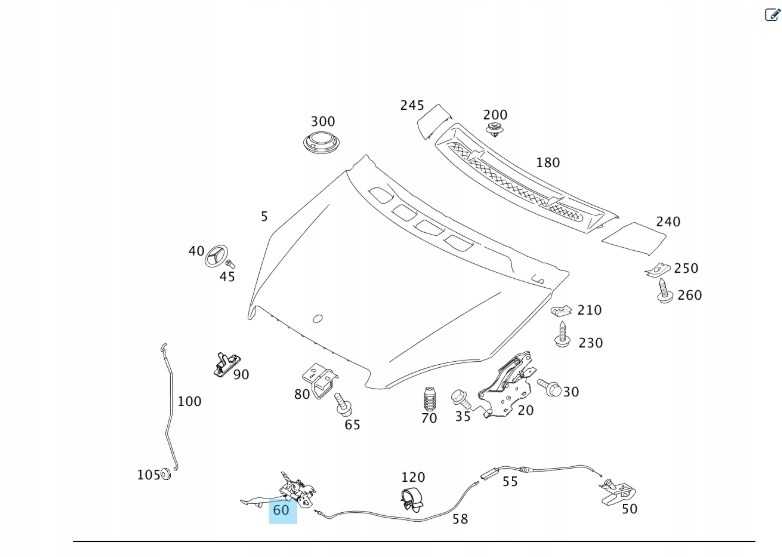 Оригінальний замок кришки двигуна Mercedes-Benz W169.