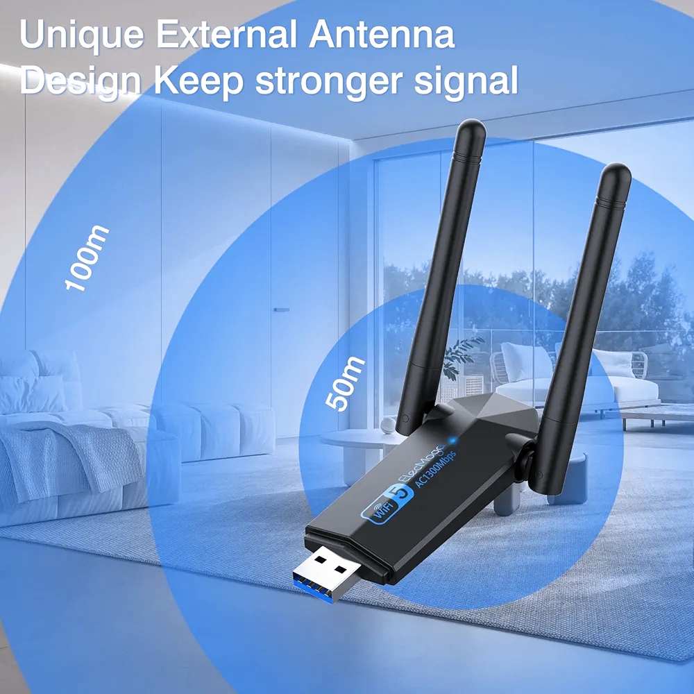 МЕРЕЖЕВА КАРТА WIFI до 1300 Мбіт/с USB WLAN ПК КАРТА ВЕЛИКИЙ ДИАПАЗОН