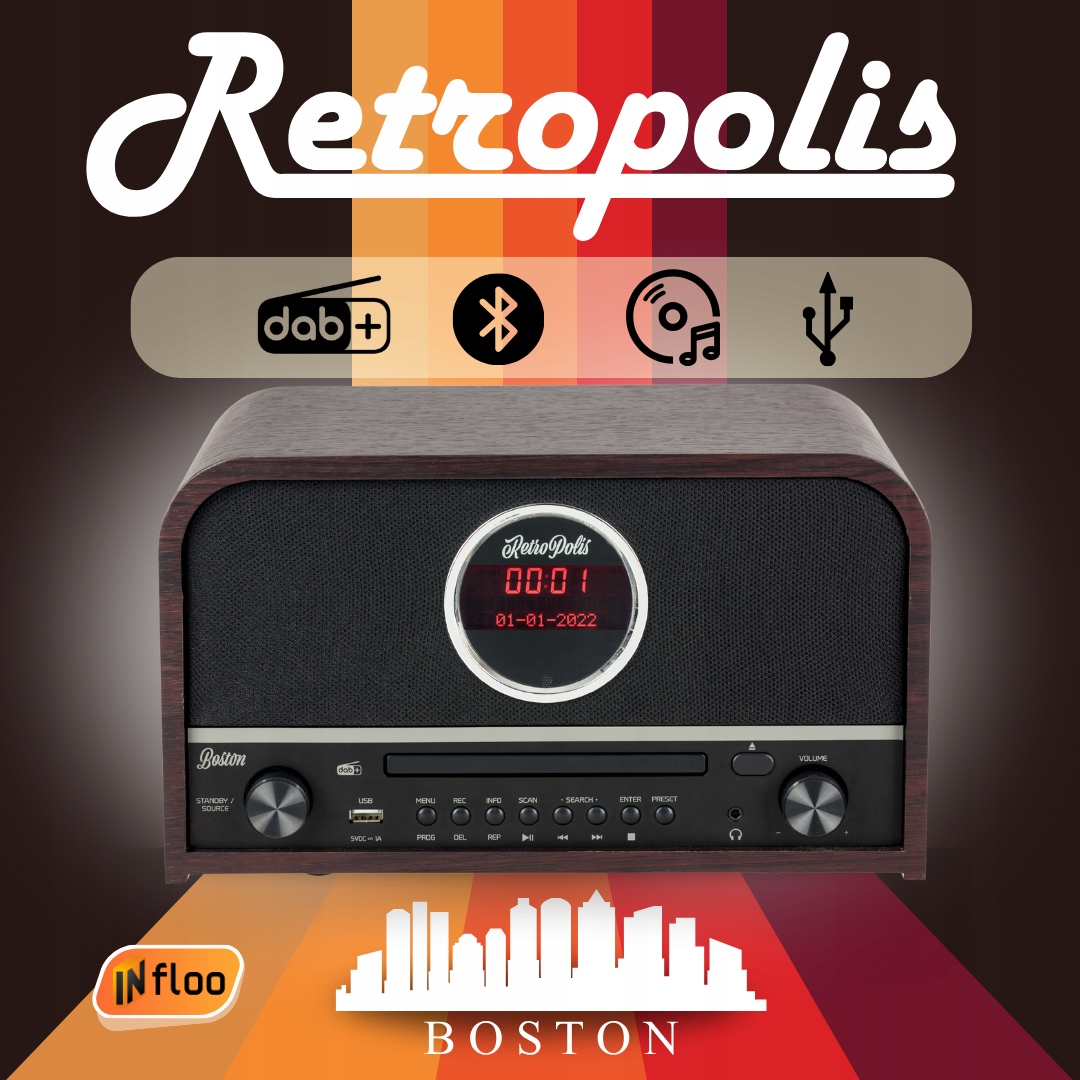 Радіо ДЛЯ ВІТАЛЬНЬОЇ Мережа BOSTON AM/FM DAB+ DIGITAL USB-A BLUETOOTH CD LED