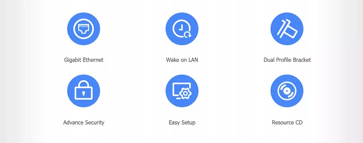Мережева карта підключається через PCI-E, що робить її придатною як для ПК, так і для серверів. Він сумісний з Windows, Windows Server 2003, 2008, 2012, 2016 32/64-bit, Linux, MAC OS і DOS. Картка підтримує WOL.