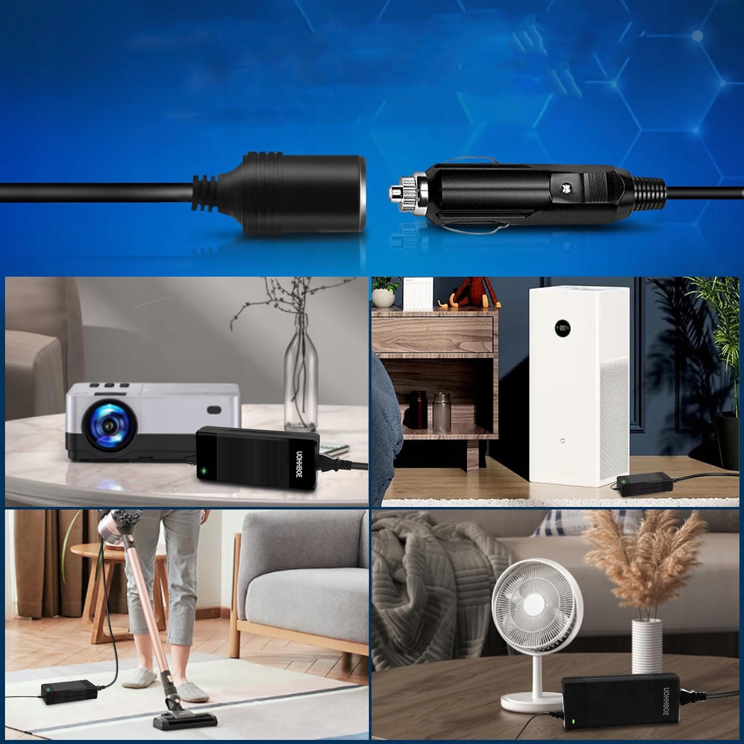 🔵🔵 Підходить для домашнього використання автомобільних електронних пристроїв, таких як: B. автомобільні пилососи, автомобільні повітряні насоси, автомобільні бритви, автомобільні холодильники, автомобільні кисневі бари, автомобільні телевізори тощо;