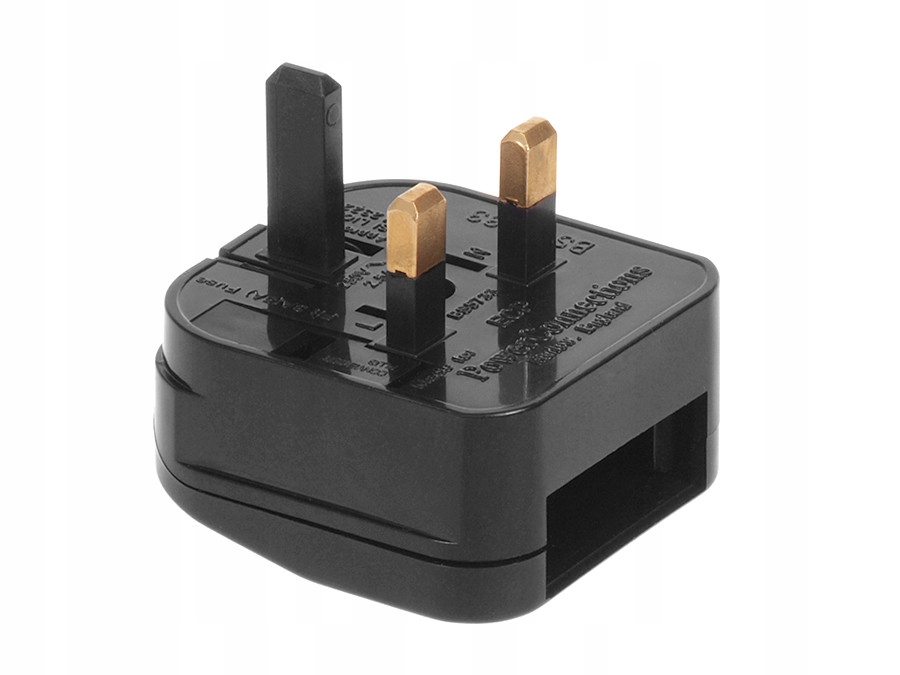 Адаптер мережевої розетки Maclean, що дозволяє підключати польські пристрої до англійських розеток (вхід ЄС, вихід Великобританії). Кручений адаптер (приєднаний до штекера).