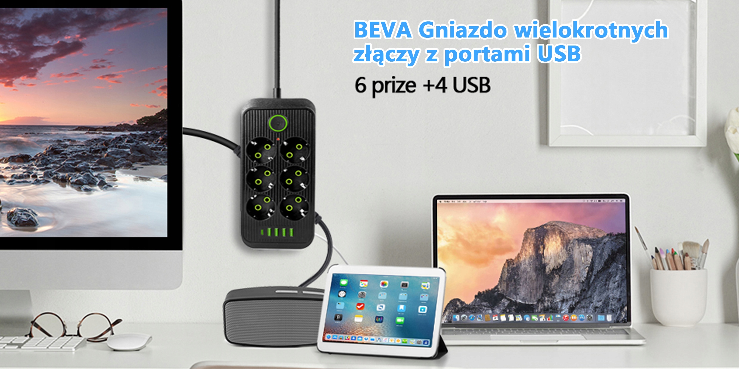 Розетки європейського стандарту Розетка змінного струму Розетка змінного струму Багатокранне подовжувач 2 м Фільтр живлення з 4 портами USB 1 C Зарядка