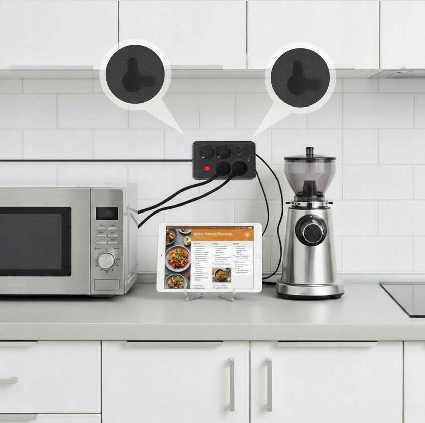 ✔️ Завдяки чотирьом мережевим розеткам ви можете зручно підключати кілька пристроїв одночасно, а три USB-порти дозволяють заряджати смартфони, планшети, бездротові навушники або акумулятори живлення без необхідності використання додаткової енергії витратні матеріали.