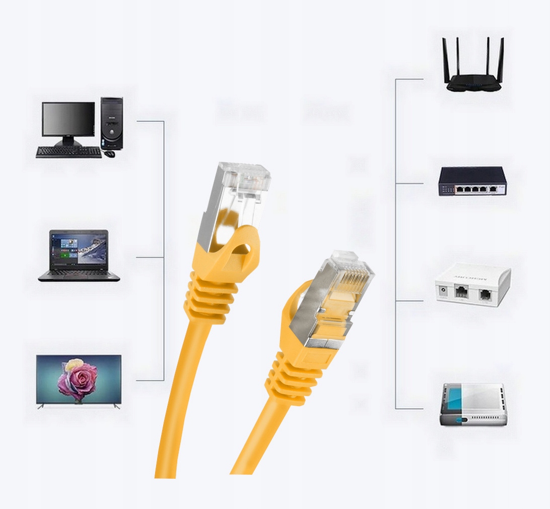 Підключення та передача даних комп'ютера, ноутбука зі світчем, маршрутизатором, абонентською розеткою, хабом, точкою доступу, модемом, в мережах LAN, Internet, Ethernet тощо.