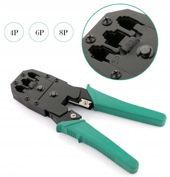 - CRIMMER -призначений для модульних типів вилок: 8P8C/RJ45, 6P6C/RJ12, 6P4C/RJ11. Виготовлений із загартованої сталі. Прилад оснащений 2 ножами - обрізки і зняття ізоляції. Змінні леза дозволяють використовувати щипці багато років.