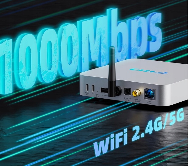 Порт Ethernet підтримує швидкість до 1000 Мб/с у дротових мережах, забезпечуючи швидку та стабільну передачу даних. Модуль Wi-Fi AP6256 підтримує бездротові мережі 2,4 ГГц, і 5 ГГц, що допомагає забезпечити стабільну бездротову передачу стратального звуку.
