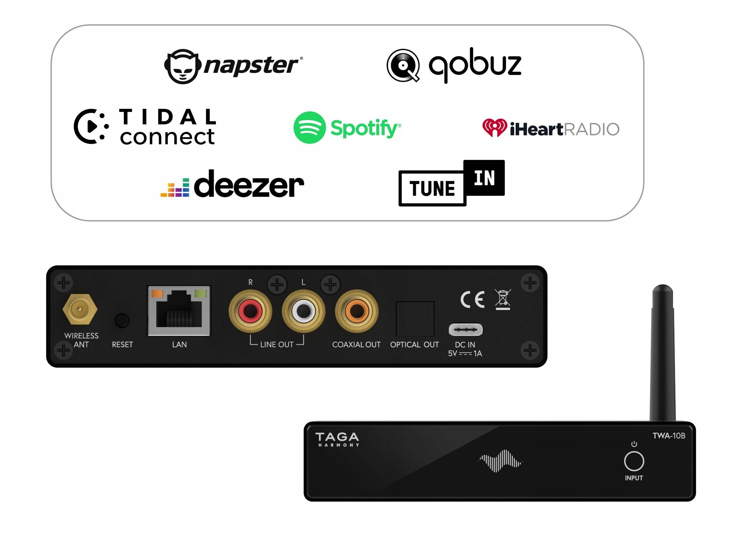 TWA- 10B швидко та легко підключити до наявного аудіообладнання та перетворити його на захоплюючу цифрову розумну систему!