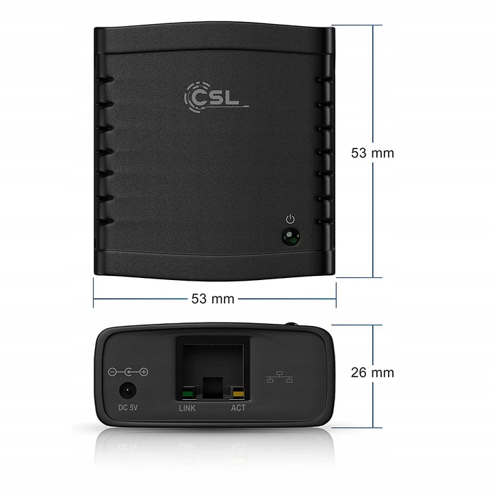 Ідеальне рішення для спільного використання USB-принтера, наприклад, у мережах невеликих офісів або вдома. Використовуючи сервер CSL, ви можете підключити USB-принтер до мережі. Для цього просто підключіть кабель RJ45 від маршрутизатора до принт-сервера і, з іншого боку, кабель USB від принтера. Після встановлення драйверів кожен користувач мережі має доступ до підключеного принтера! | 300136