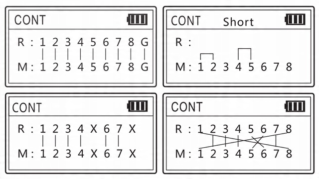 Перевірка карти з'єднання. Тестер складається з двох частин: основного одиничного дюйма та приймача драйвера-онора, що дозволяє зручно випробувати компоненти мереж до 600 м завдовжки. Випробуваний розділ Ethernet або телефонної мережі підключений до основного блоку та термінатора на далекому кінці кабелю. Тестер має набір підказок для вимірювання для підключення до інших установок, ніж мережа Ethernet. Тестер відображається графічно на дисплеї карти з'єднань, числа парних вен та помилок таких коротких схем, інтервали в з'єднаннях, неправильні з'єднання та неправильне спарювання вен.