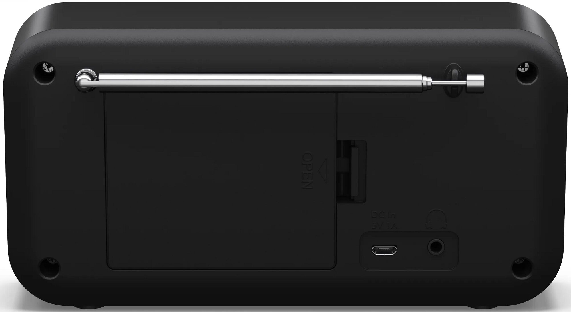 Компактний портативний радіоприймач DAB+/DAB/FM з можливістю потокового відтворення музики Bluetooth, джерело живлення через USB або акумулятор. DAB+, DAB та FM -приймач із системою RDS з цифровим сертифікат радіо. Відтворення бездротового потоку через інтерфейс Bluetooth 5.0. USB або живлення акумулятора, роз'єм для навушників для індивідуального відтворення звуку. Телескопічна антена, автоматична настройка та пошук станції.