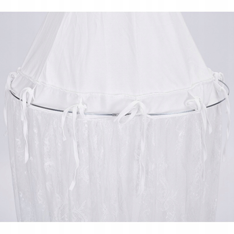 Чудовий мереживний балдахін Колір: білий Популярний продукт для облаштування дитячої кімнати Він стане не тільки гарною прикрасою кімнати, але й чудовим елементом розваг та ігор для вашої дитини! Розміри: 50 см діаметр х 270 см Балдахін є чудовою прикрасою та чудовим елементом розваги, а також у такому вигляді його можна використовувати як МОСКІТНУ СІТКУ. У набір входить: тюлевий балдахін металеве кільце/набір для кріплення (двосторонній скотч, набір стельових кріплень, шурупи, двосторонній скотч)