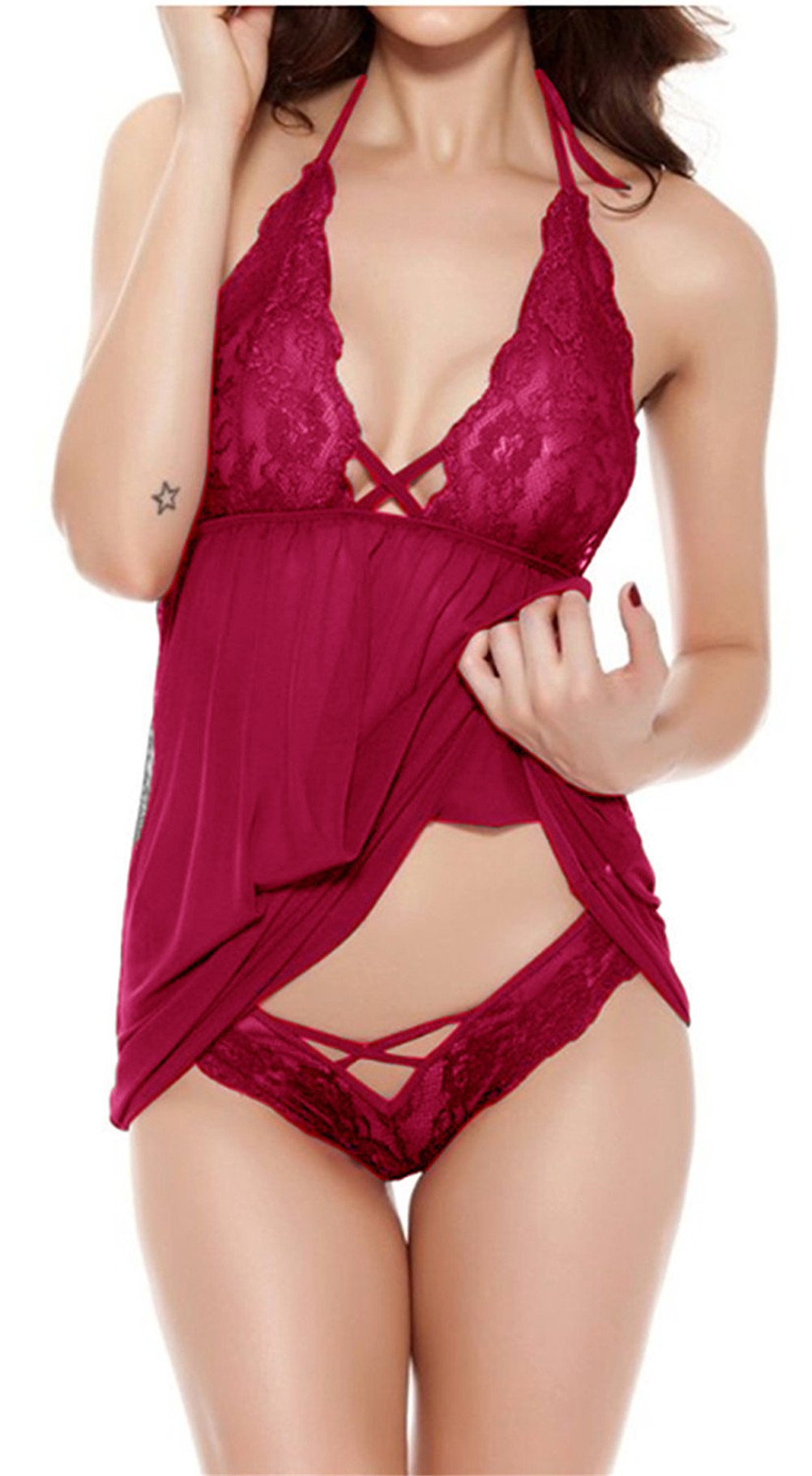 Чуттєва сорочка з глибоким декольте та сексуальним мереживом стринги виготовлені з приємного на дотик, ніжного матеріалу, завдяки чому комплект чудово сидить на тілі, комфортно спати та інше ;)