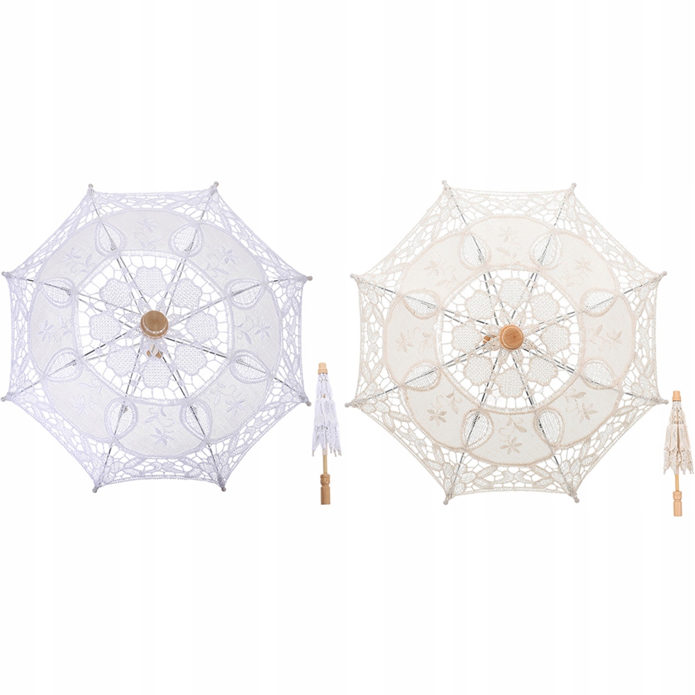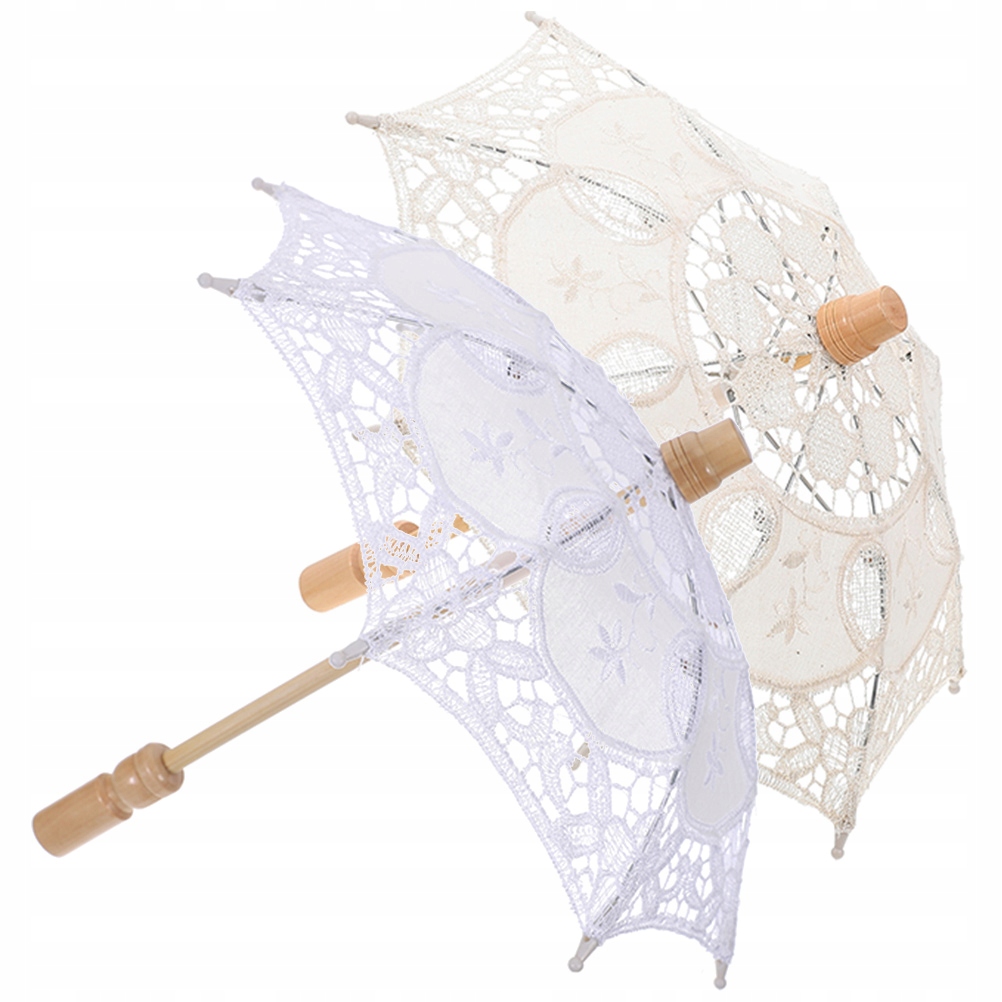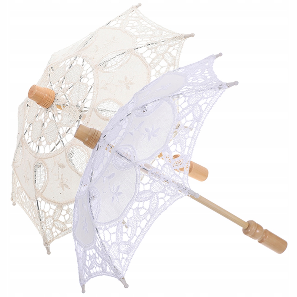 МЕРЕЖИВНА ПАРАСОЛЬКА ВЕСІЛЬНИЙ ДЕКОР РЕТРО БАВОВНЯНІ ПАРАСОЛЬКИ ДІВЧИНА 2 ШТ. ДЕРЕВ'ЯНІ