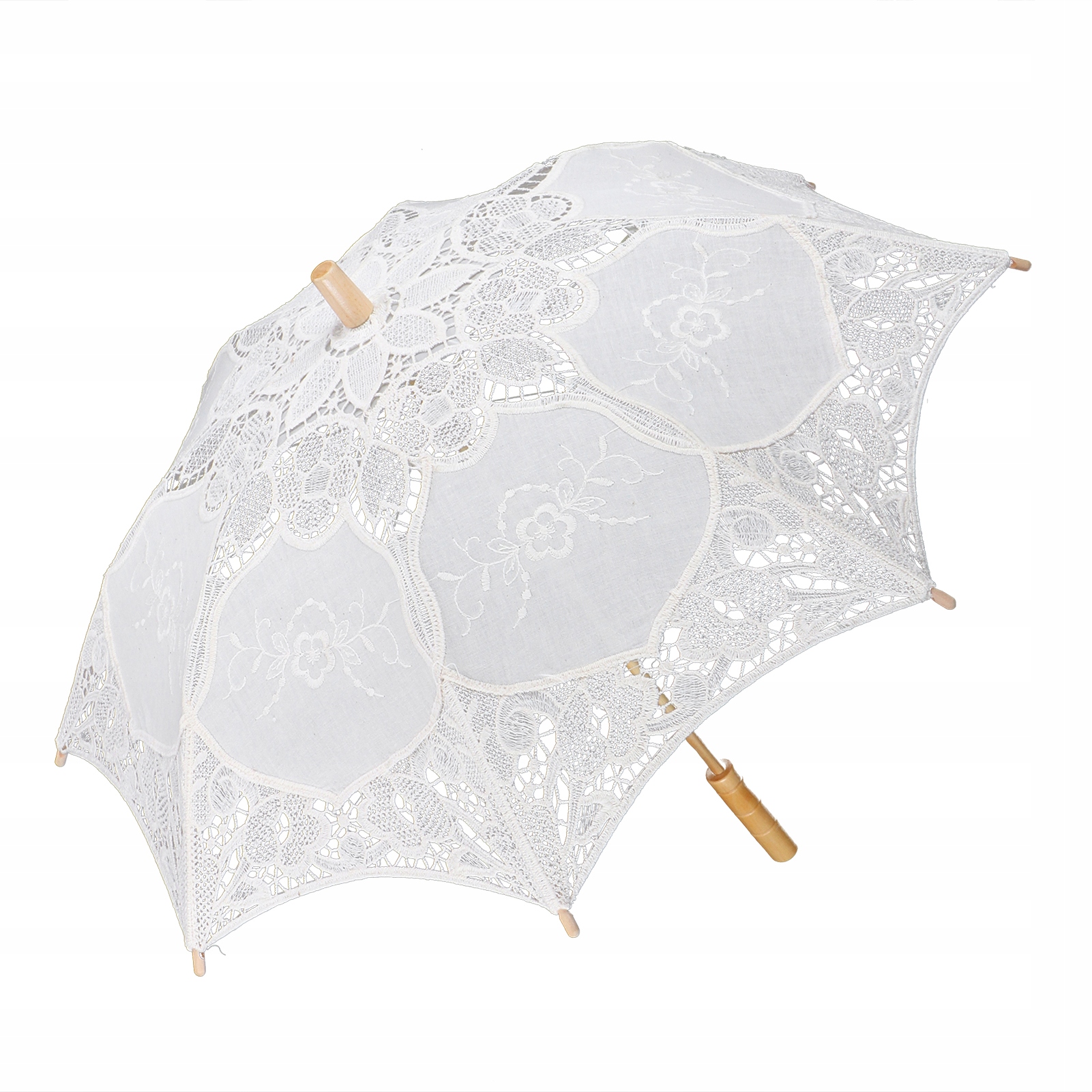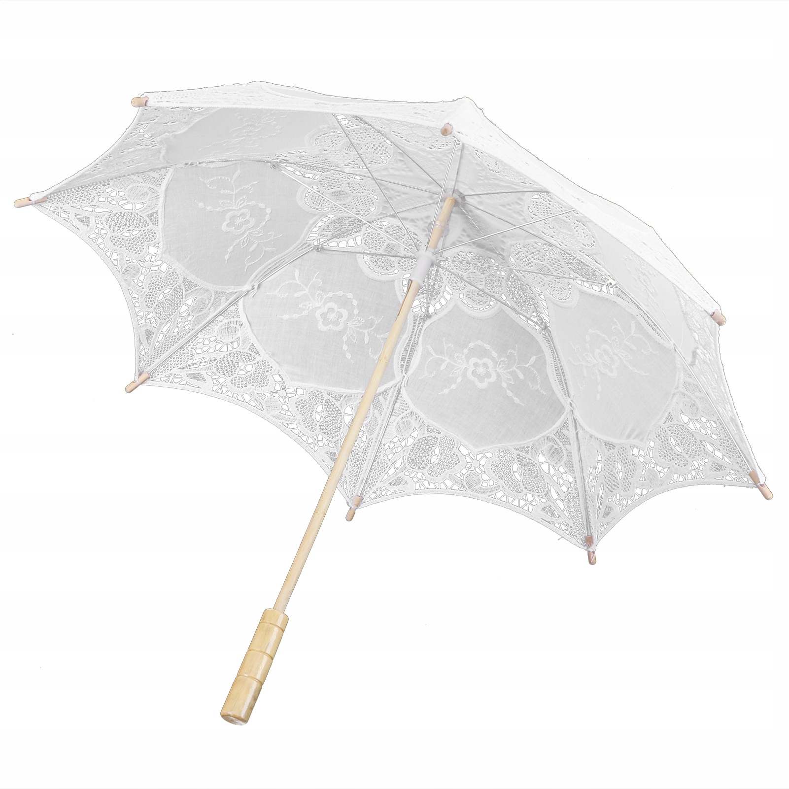 2、Поверхня парасольки виготовлена з високоякісного мережива, а ручка виготовлена з евкаліпта.