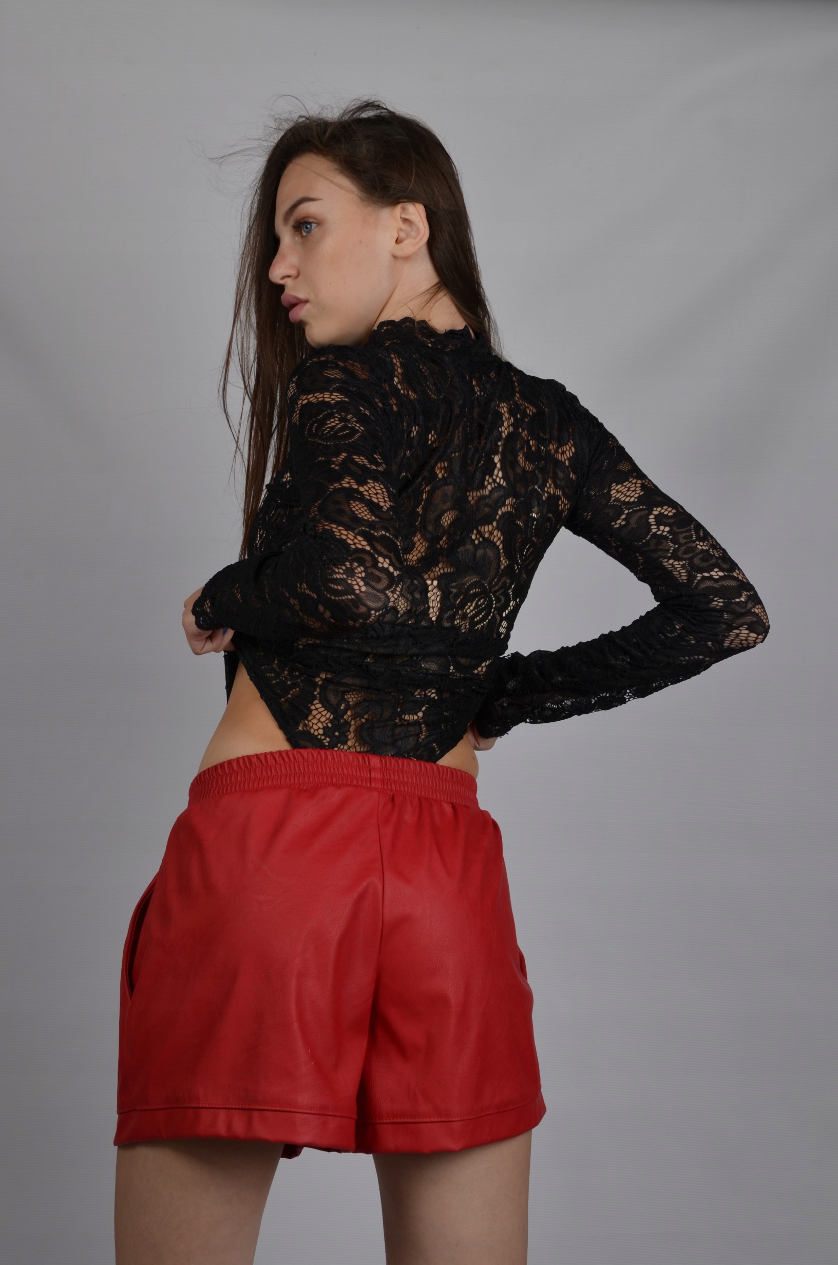 Мереживне чорне боді з водолазкою та довгими рукавами, M/L