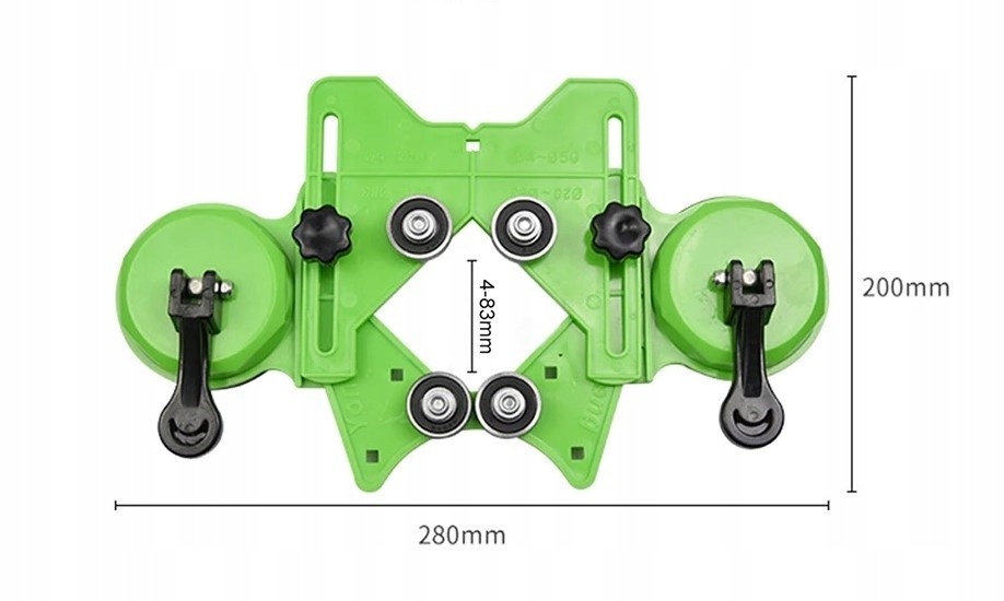 Направляючи полегшує отвори , використовуючи отвори, мереживо та свердла в керамічних плитках, Кам'яний посуд, глазур, скло, метал та інші матеріали. Адаптовано для експлуатації отворів у діапазоні 4 мм - 83 мм.
