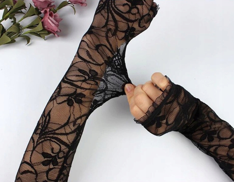 Жіночі довгі мереживні рукавички, злегка еластичні