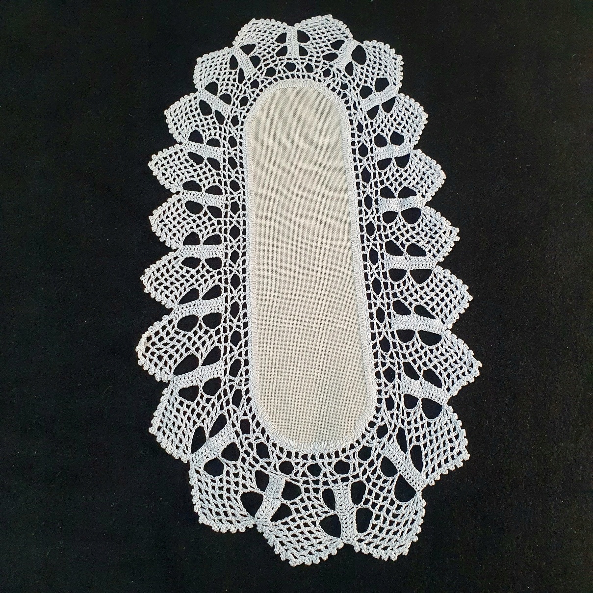 ГАРНА ОВАЛЬНА ПАРІЕРІЯ З ШИРОКИМ В’ЯЗАНИМ МЕРЕЖИВОМ.