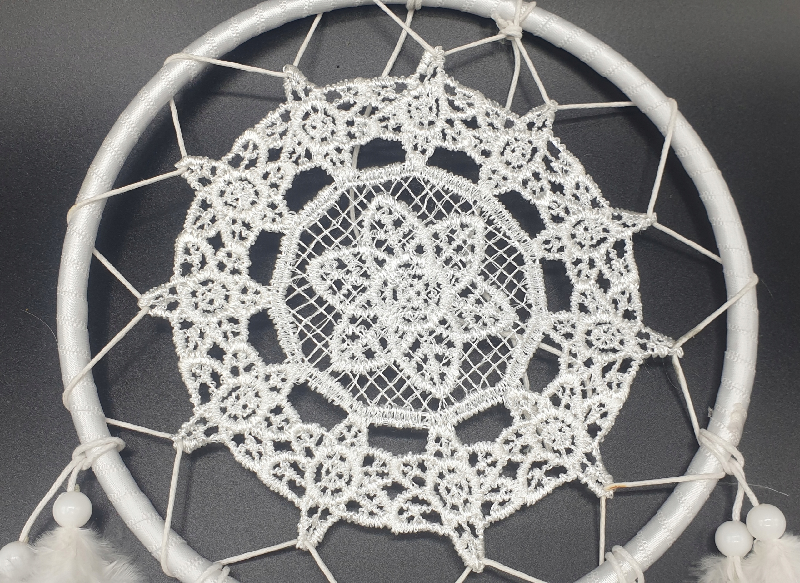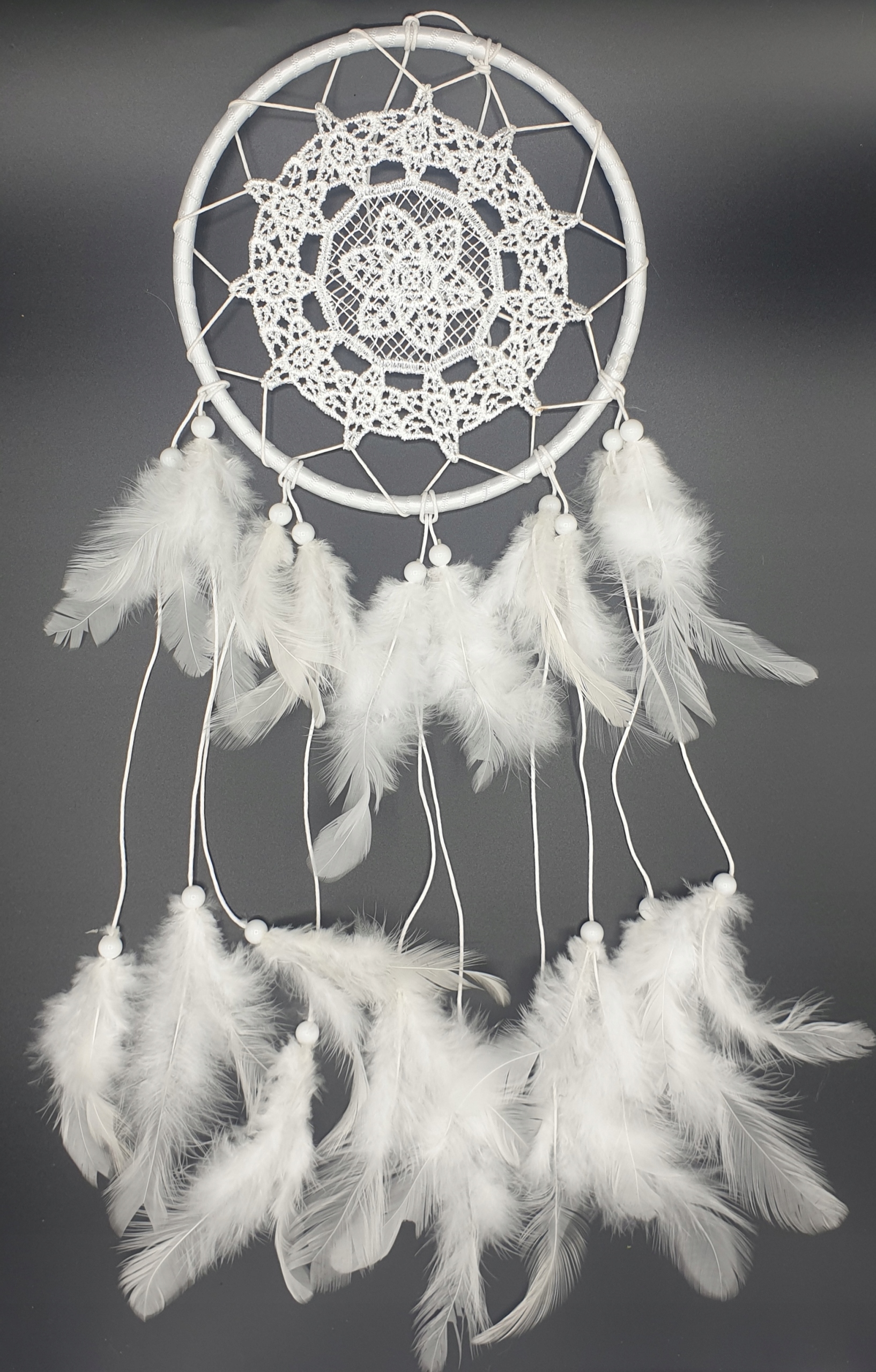 Мереживо ловець снів білі пір'я 40см