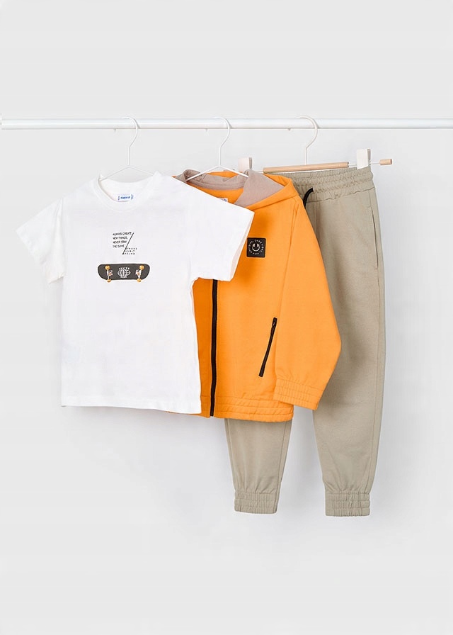 Треку костюма для хлопчика, від мера іспанської компанії. Він складається з трьох одягу: T -сорочки, толстовки та довгі спортивні штани.