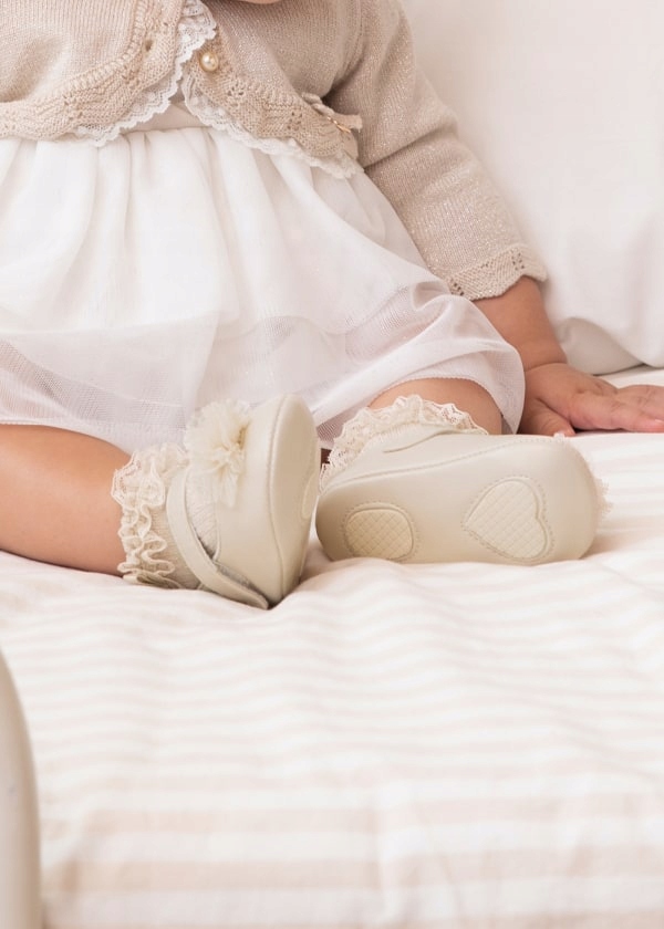 взуття для балерини для новонародженого, у класичному та позачасовому стилі для найелегантніших стилізацій. Взуття з внутрішньою підкладкою та внутрішньою підошвою, виготовленою з дихаючої бавовни. Регульоване кріплення на липучках, що гарантує ідеальну адгезію до стопи. Все наше взуття виготовлено з оздоблювальних матеріалів, які не містять хімікатів. Ця стаття упакована в коробку з новонародженої лінії, що ідеально відповідає особливих випадках.